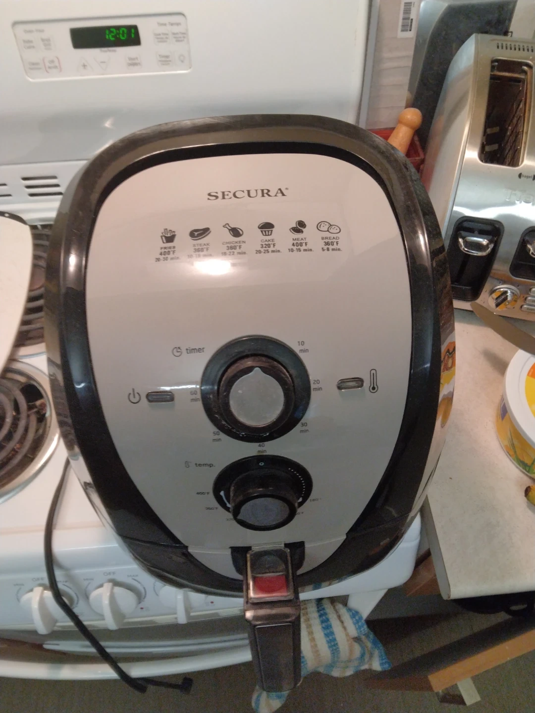 Selling a Secura air fryer. It's in good condition and ready for a new kitchen! Perfect for fries, steak, chicken, cake, meat, and bread