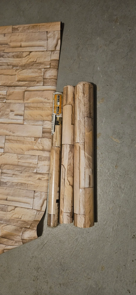 New, self-adhesive wallpaper. Stone-look design. Perfect for accent walls or home decor projects. Easy to apply.