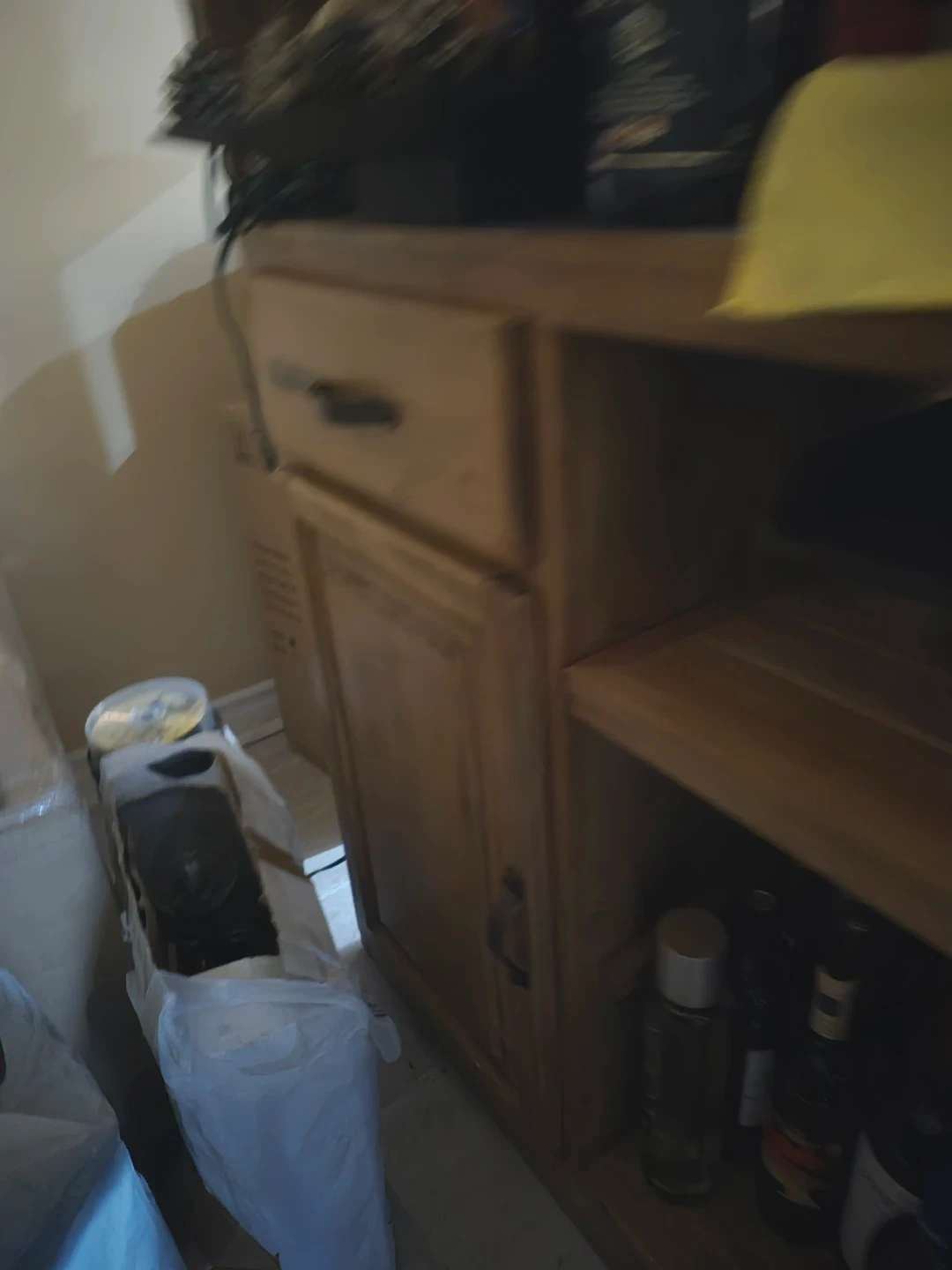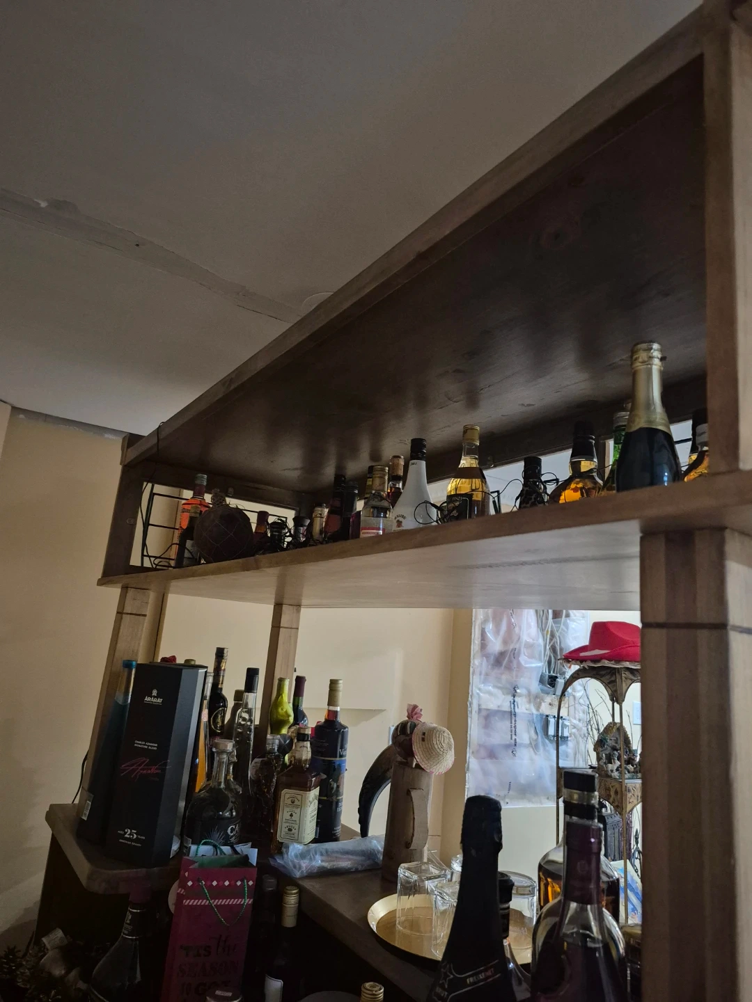 Selling a wooden bar with plenty of storage space! It features cabinets, drawers, and shelving to store all your favourite beverages and glassware. Perfect for entertaining or adding a touch of rustic charm to your home