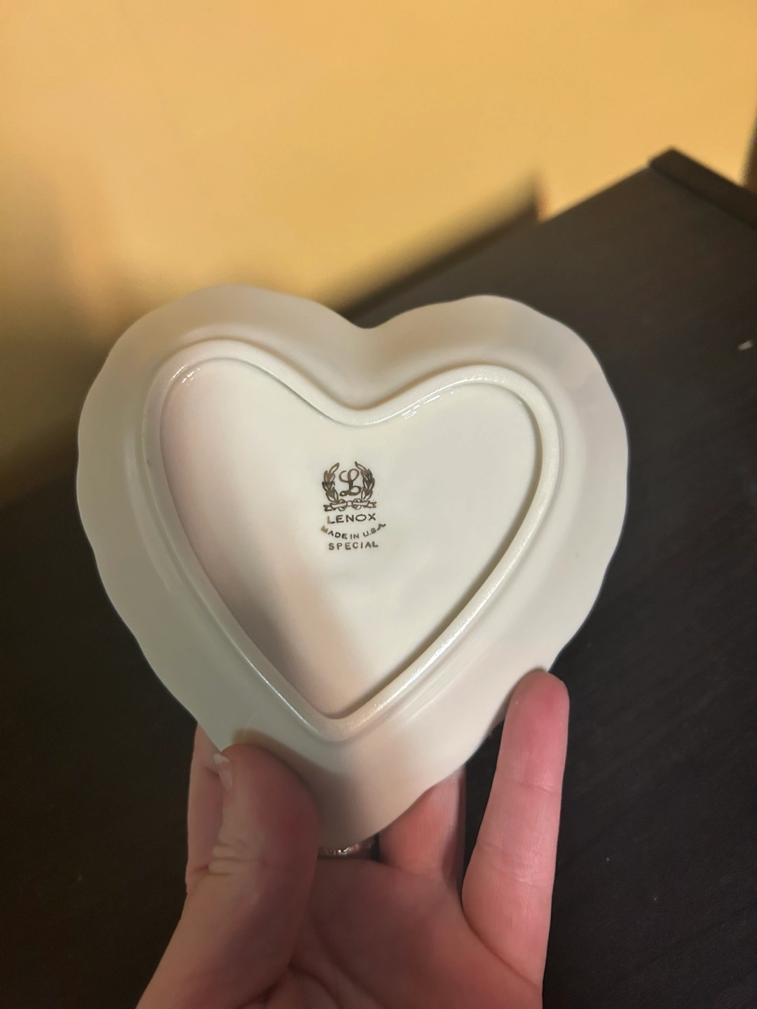 Buy & SellLenox Heart Shaped Dish - Special EditionLenox Heart Shaped Dish - Special Edition$9Adorable heart-shaped dish. Made of fine china. Gold trim accents. Features an embossed rose. Perfect for trinkets or candy.ConditionNewWHERE TO MEETHomeView MapSELLERverifiedRebecca WOceanside650 reviews0 chats·0 favorites·3 viewsSEND CHAT TO SELLERHi Rebecca W! I’m interested in your listing.Hi Rebecca W! I’m interested in your listing.Get the Karrot app to chatSign In to chat