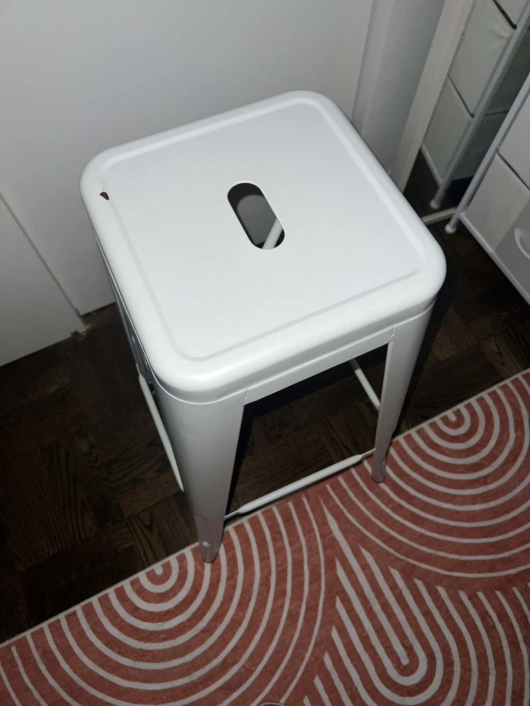 Brand new - never been used bar stool. Purchased as a set of 2. This one came with the paint chipped off the top. Otherwise, in perfect condition. Pick up by E 57th and 3rd (or second- whichever you prefer!)