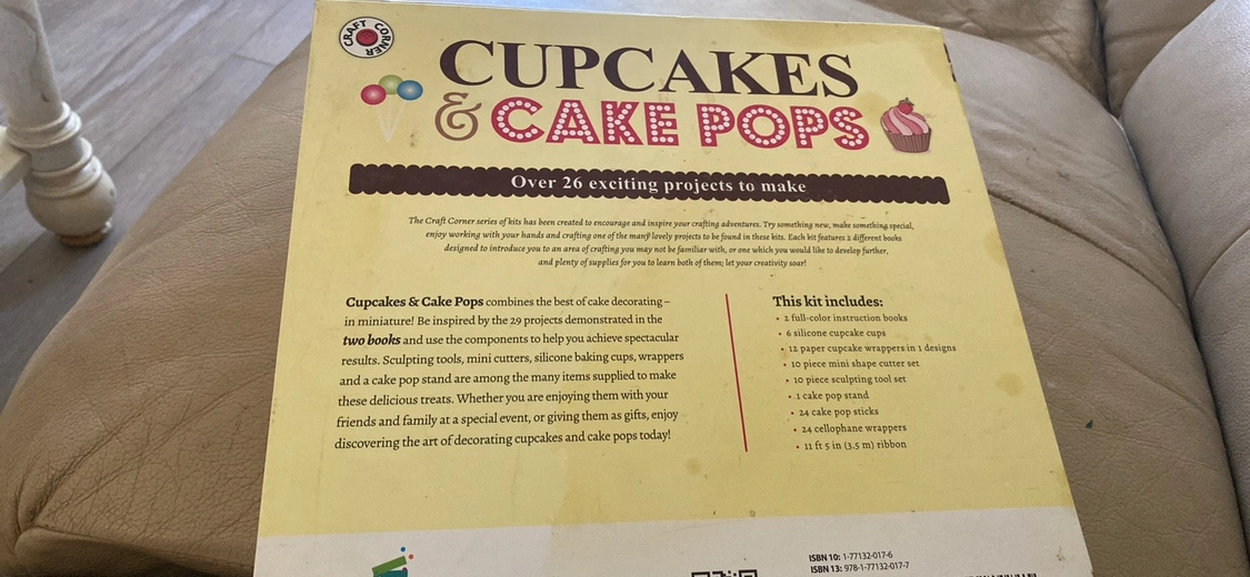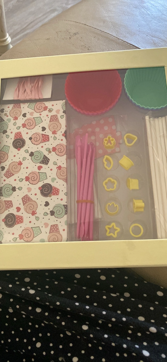 This is a kit with all the tools you need to decorate cupcakes and cake pops. It includes decorating tools, cupcake liners, cake pop sticks, and more. Inside of box never opened