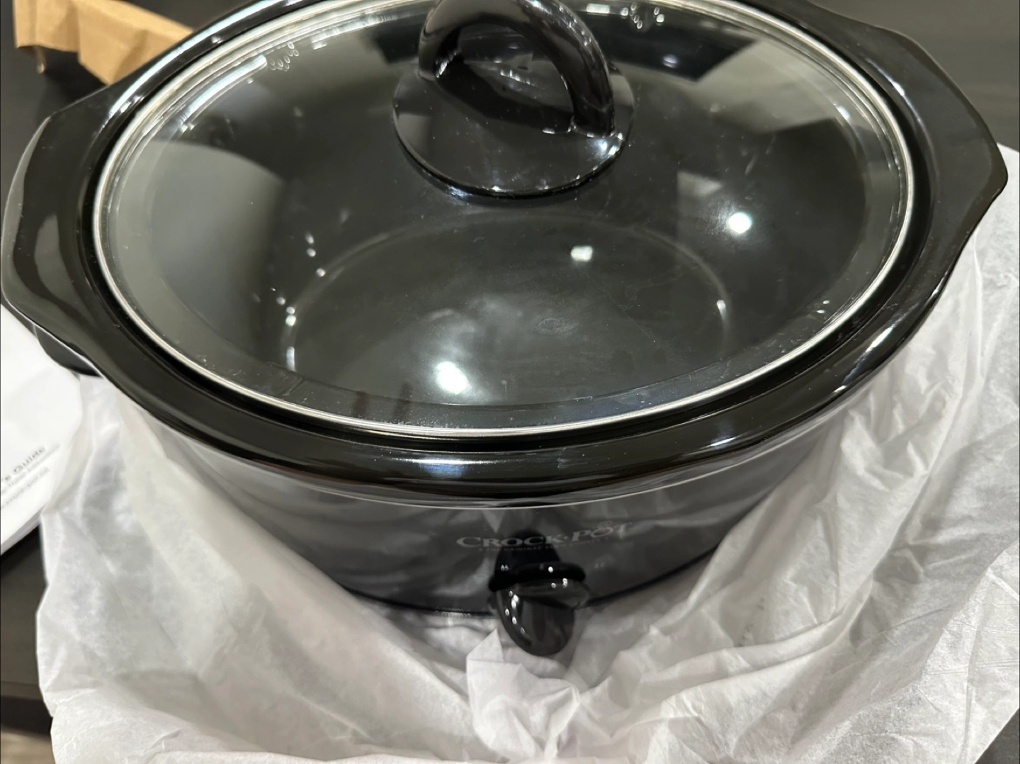 I'm selling a Crock-Pot slow cooker in black. It's a 4-quart manual model, perfect for cooking up delicious meals! It comes with the lid and the original packaging. Originally bought for $85.99