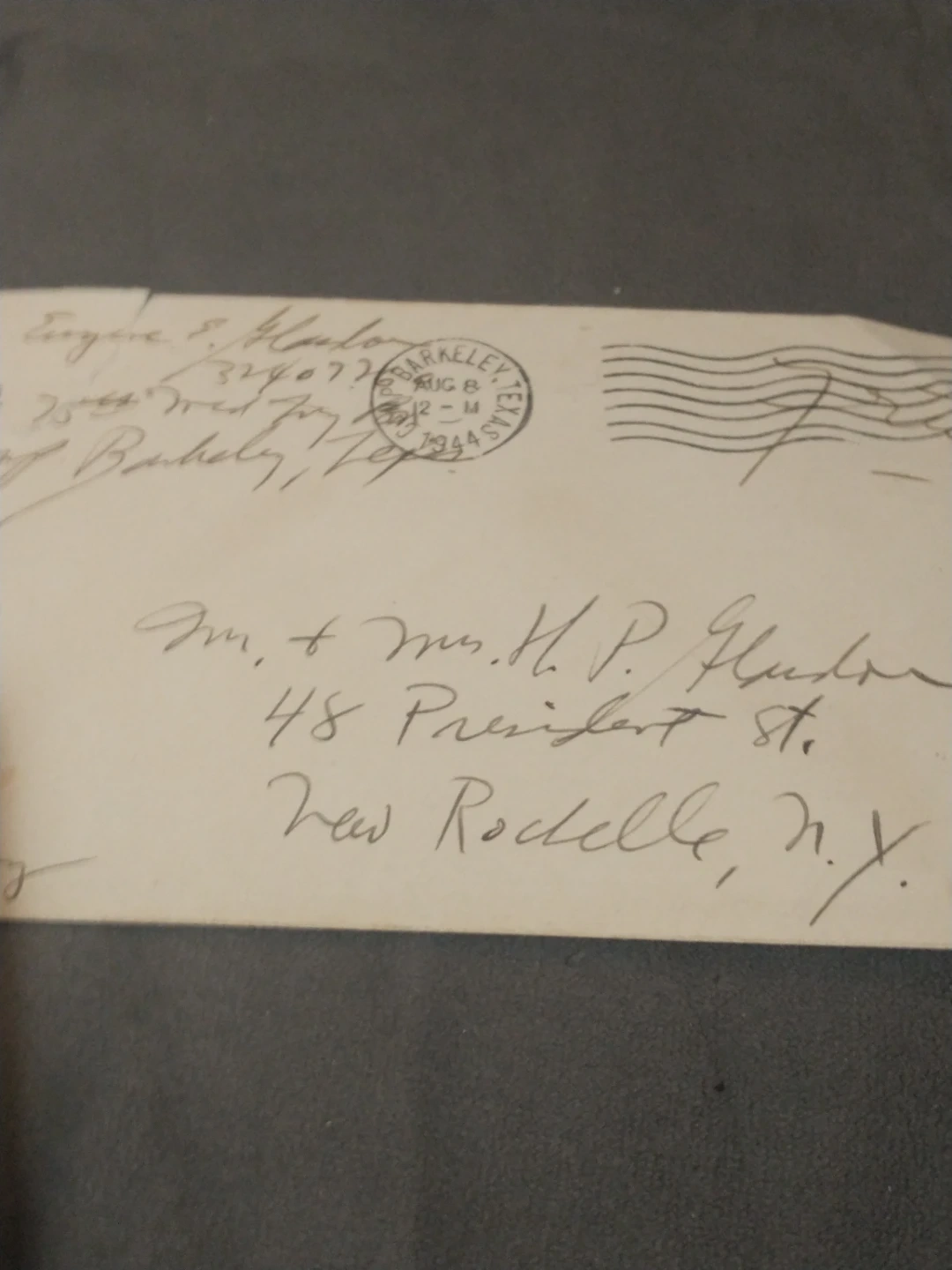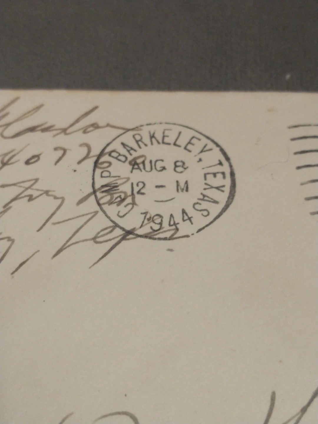 This is a WWII franked envelope with writing and a postmark from Camp Barkeley, Texas to a soldier's family or friends in NY. Members of the US military wrote 'free' at the top right so they did not need to pay postage. In box 5.
