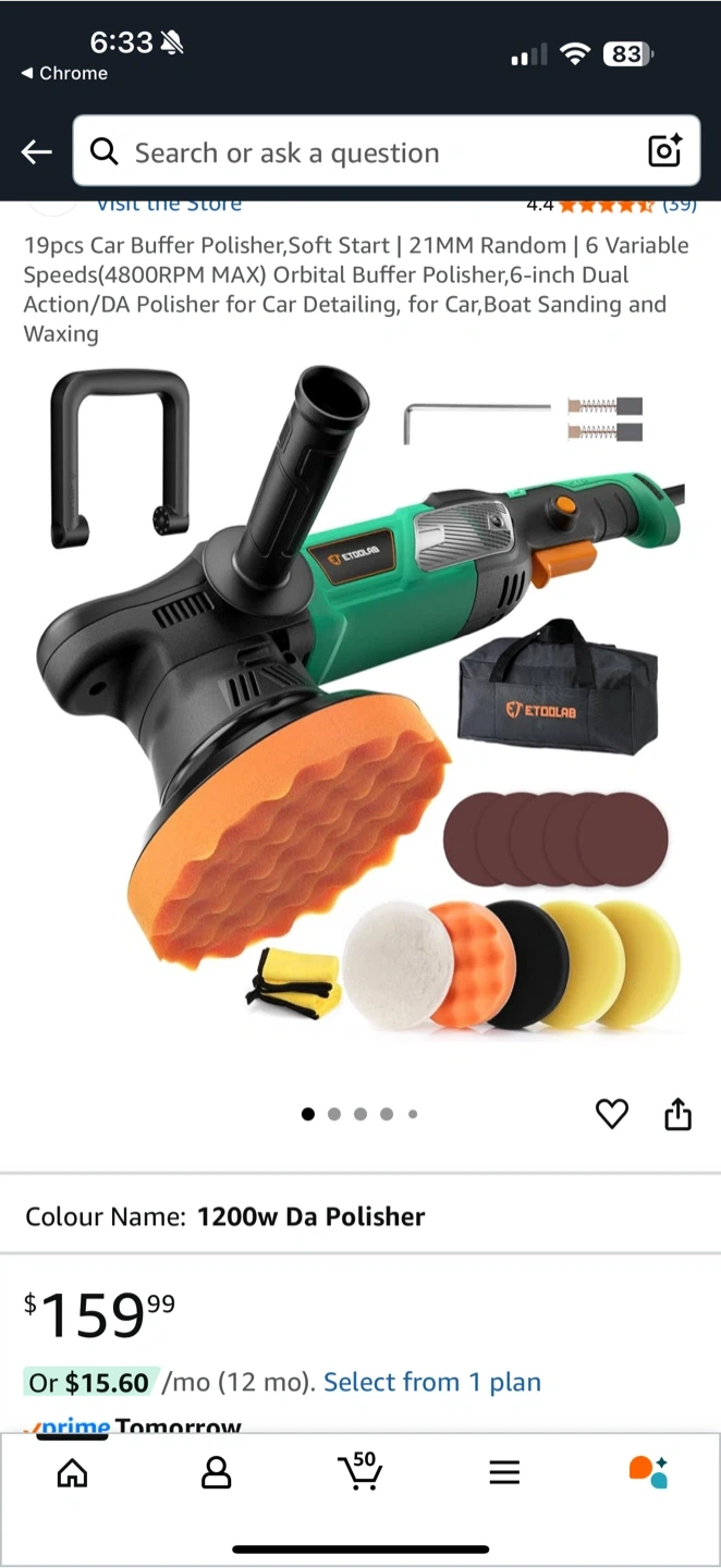 Selling an ETOOLAB 1200W DA Polisher kit. It's in like-new condition and ready to help you get your car, boat, or marble surfaces looking their best!