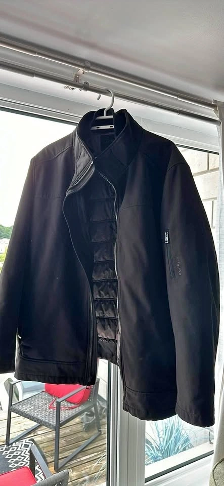 Calvin Klein Heavy Winter Bomber Jacket. Size Large. Style CMZ03943, Black. Zip-up closure, side pockets, and an inside pocket. Removable liner.