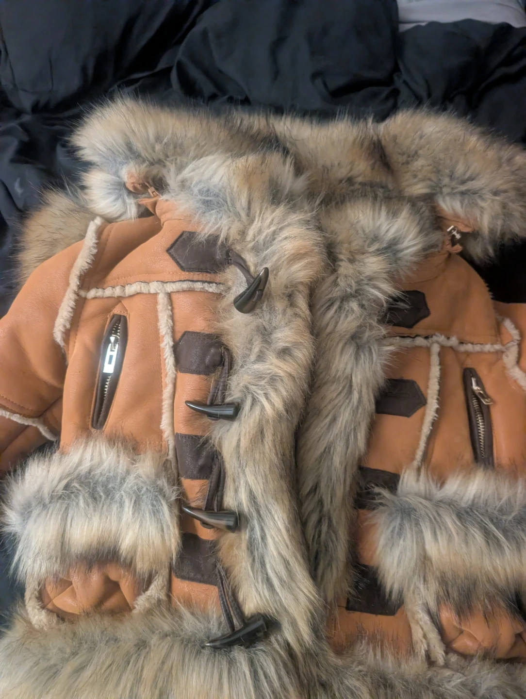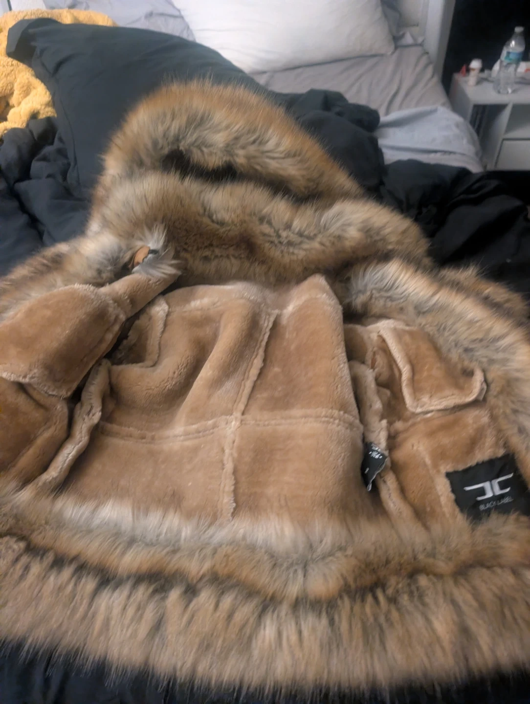 Selling a JC Black Label jacket with fur trim! It's a size 2 and in great condition. The jacket features a hood and toggle closures.