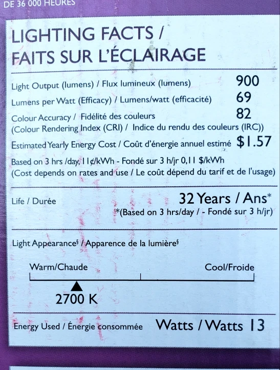 * 13 Watts (75 watt equivalent)
