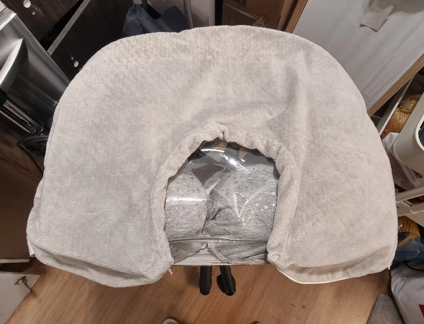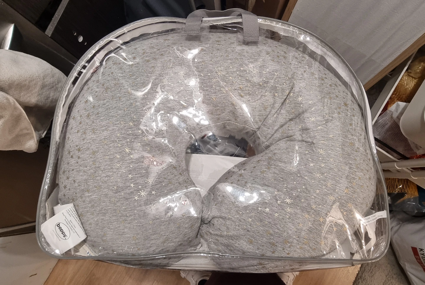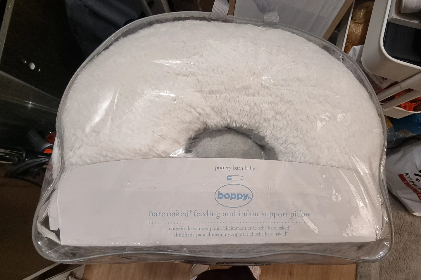 Boppy bare naked feeding and infant support pillow. It's a nursing pillow designed for comfort and support. Comes with a soft, plush cover.