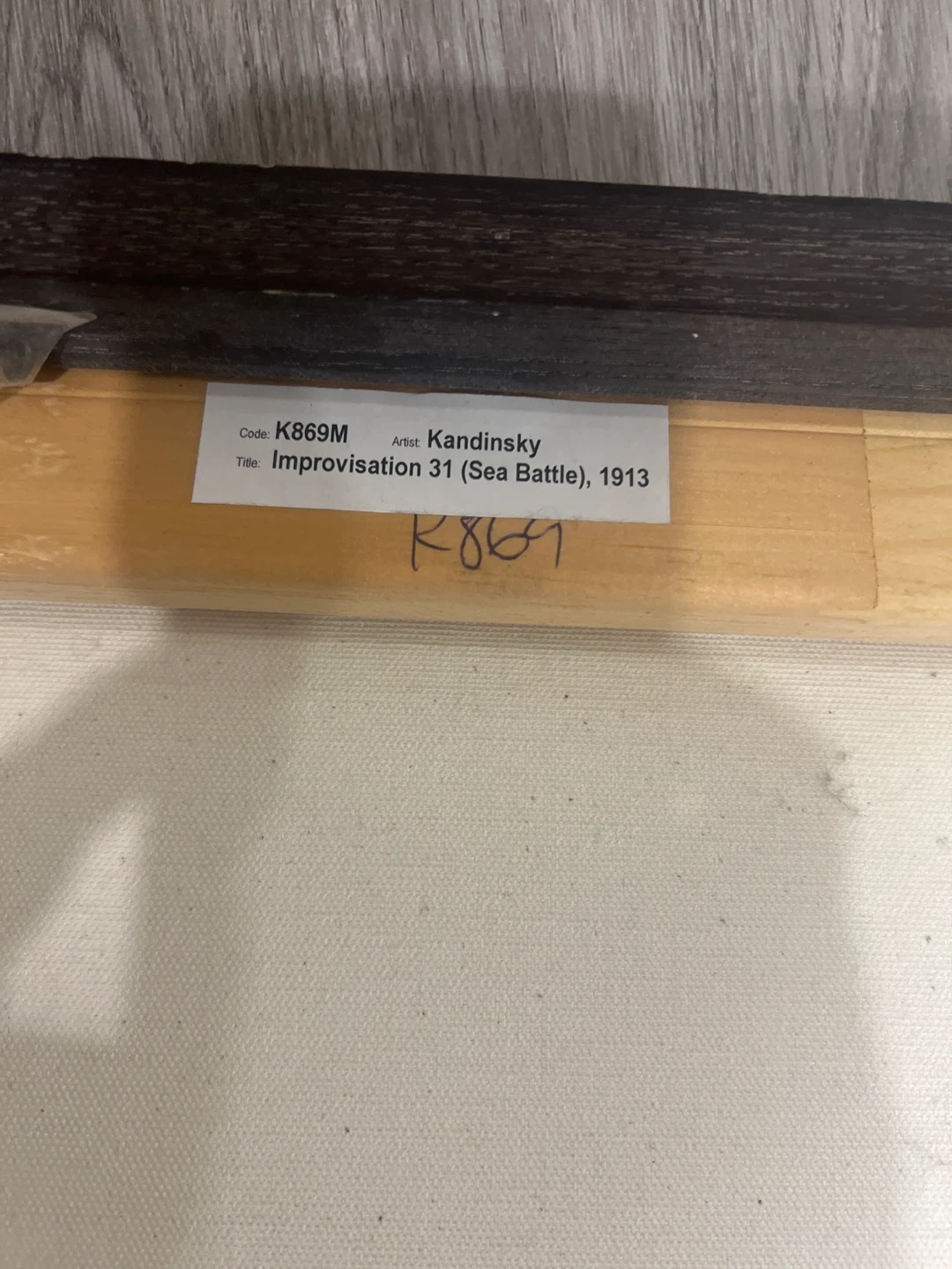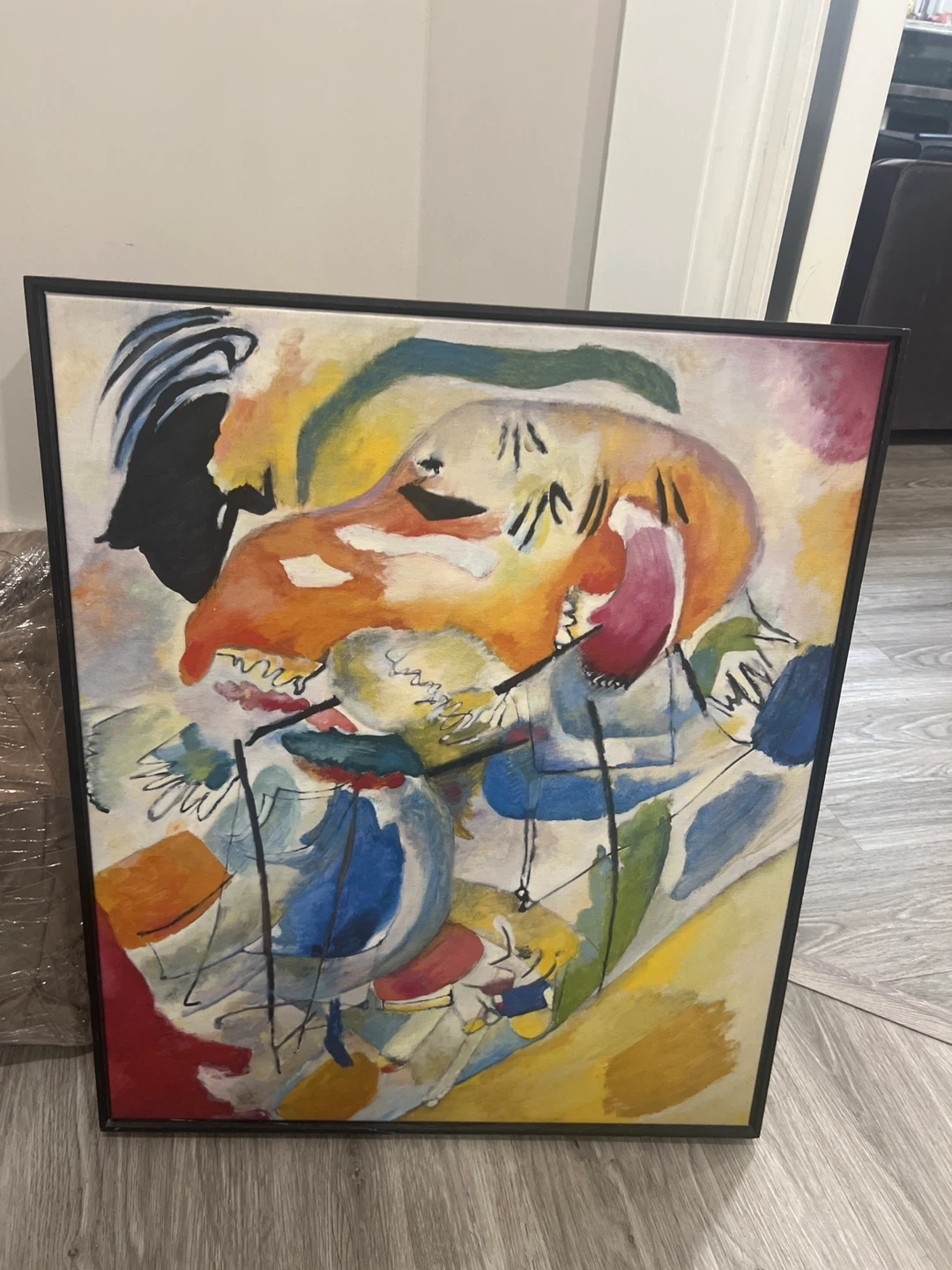 Selling a framed print of Kandinsky's 'Improvisation 31 (Sea Battle), 1913'. It's a vibrant and eye-catching piece that would look great in any home. The code on the back is K869M.