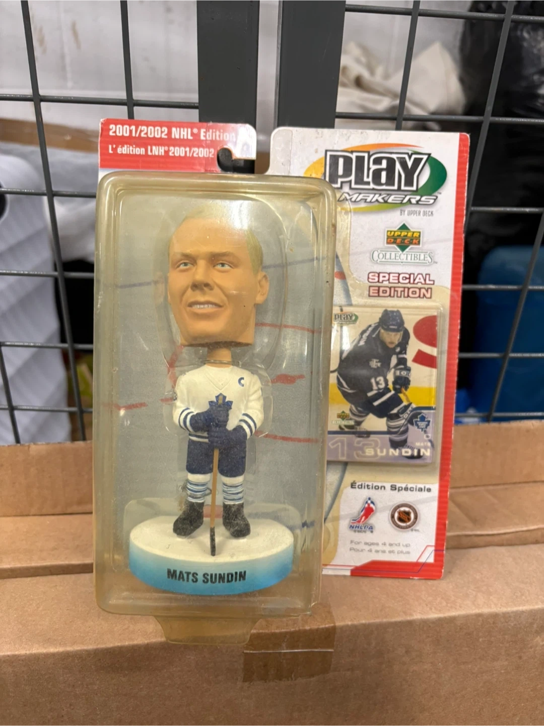 Details:• Player: Mats Sundin• Team: Toronto Maple Leafs• Series: PlayMakers by Upper Deck• Edition: 2001/2002 NHL Special Edition• Bobblehead collectible figure• Includes original packaging
