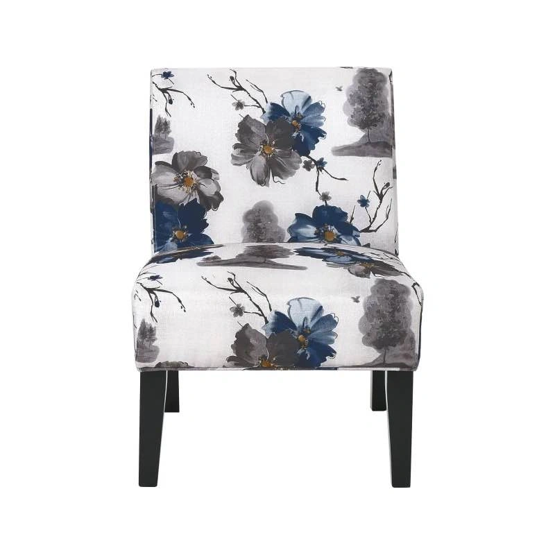 Contemporary Accent Chair with Rubberwood Tapered Legs, Upholstered Seating for Dining Room, 22.5'' L x 29.5'' W x 32'' H, Blue+Multi. Brand new in box.
