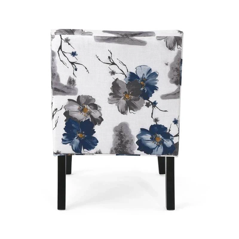 Contemporary Accent Chair with Rubberwood Tapered Legs, Upholstered Seating for Dining Room, 22.5'' L x 29.5'' W x 32'' H, Blue+Multi. Brand new in box.