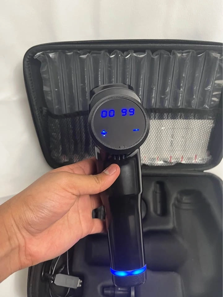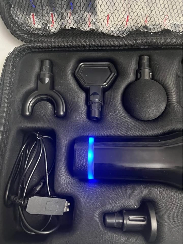 Awesome CARECI muscle massage gun. Comes with 4 different massage heads, charging cable, and a hard shell carrying case. Has an LCD touch screen for adjusting settings. Good for easing muscle soreness and recovery.