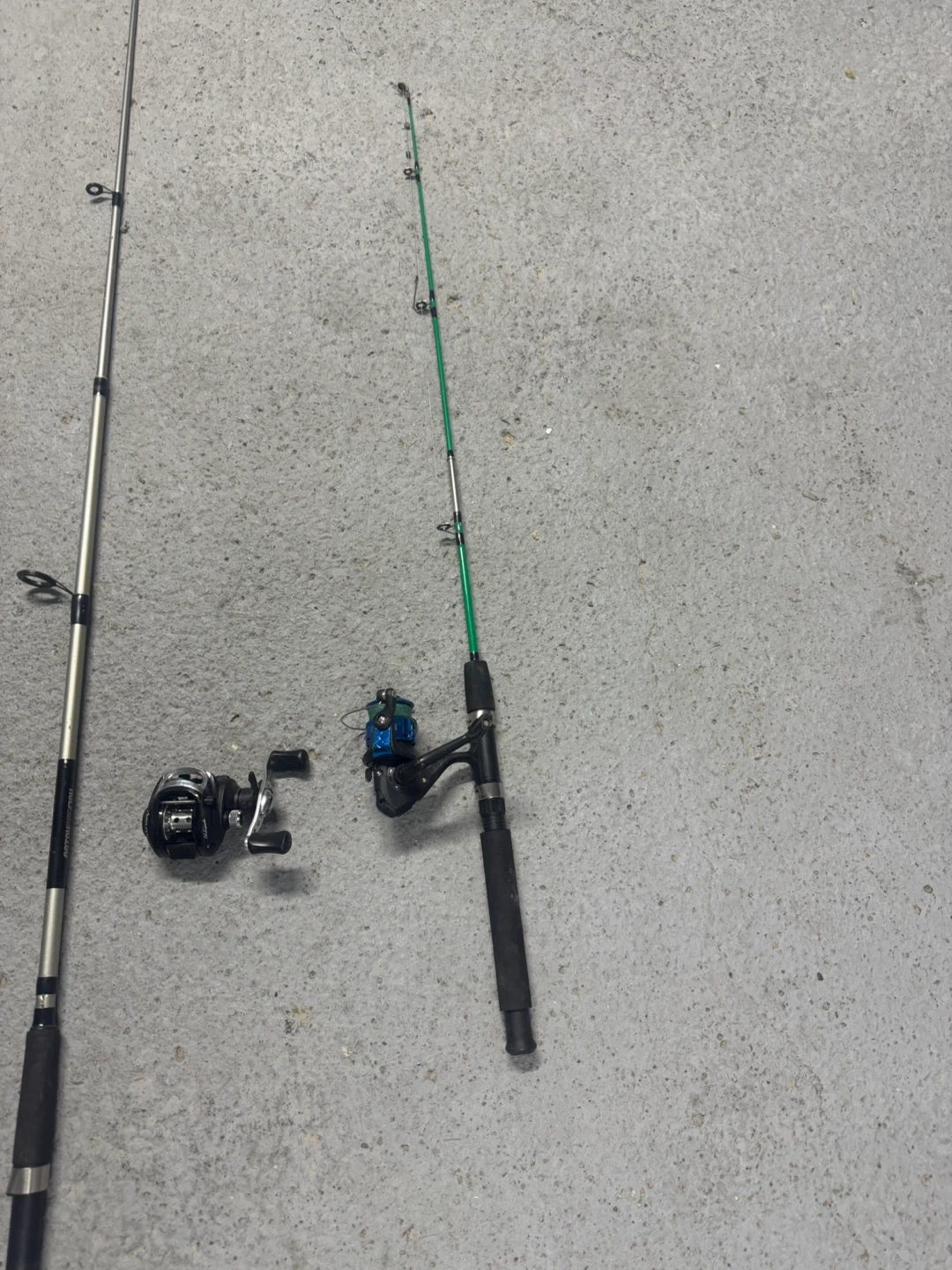 Buy & SellTwo Fishing Rods with ReelsTwo Fishing Rods with Reels$61One silver fishing rod $30 bait casting real is $60 and a green fishing rod with a blue and black reel $40 . Ready for your next fishing trip!ConditionLike newWHERE TO MEETCheck LocationView MapSELLERverifiedNoahNorthgate650 reviews0 chats·1 favorites·27 viewsSEND CHAT TO SELLERHi Noah! I’m interested in your listing.Hi Noah! I’m interested in your listing.Get the Karrot app to chatSign In to chat