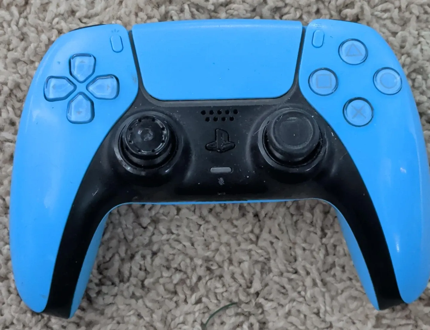 This is a blue DualSense wireless controller for PlayStation 5. It's compatible with PS5 consoles. It features haptic feedback and adaptive triggers. This controller is great for gaming enthusiasts!