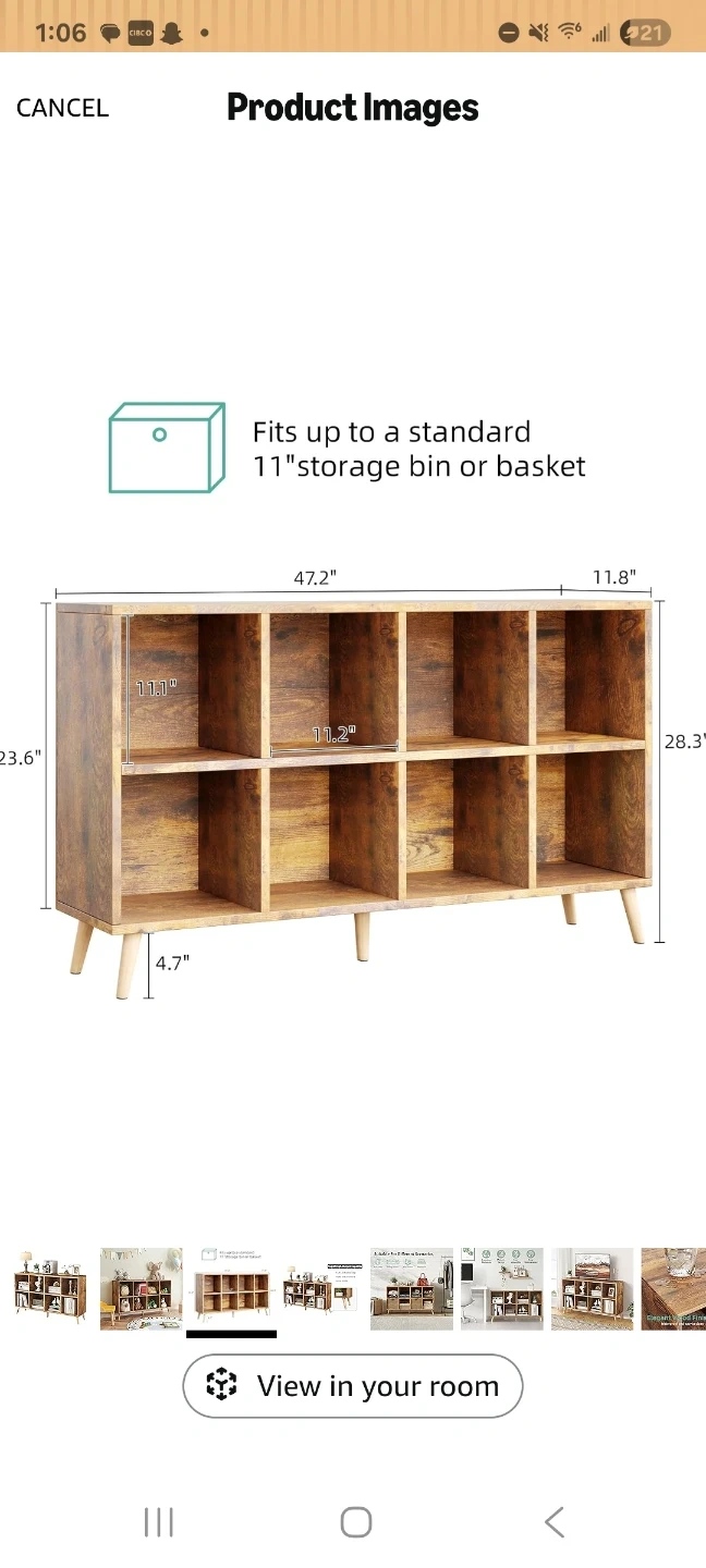 Selling a beautiful wood-finish 8-cube storage shelf, perfect for books, decor, or storage bins. This piece has a warm, rustic look with clean lines and raised legs, making it a great fit for bedrooms, living rooms, or dorms.