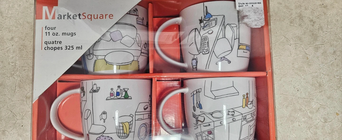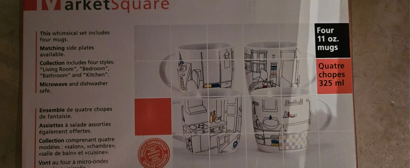 Do you want cool mugs? 1 set of whimsical mugs. Collection includes "Living aRoom",