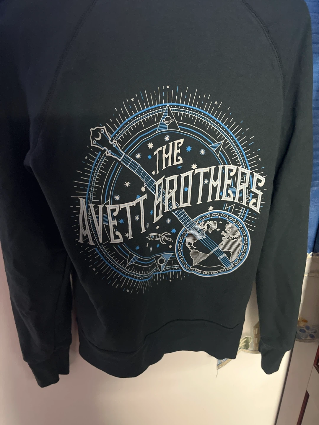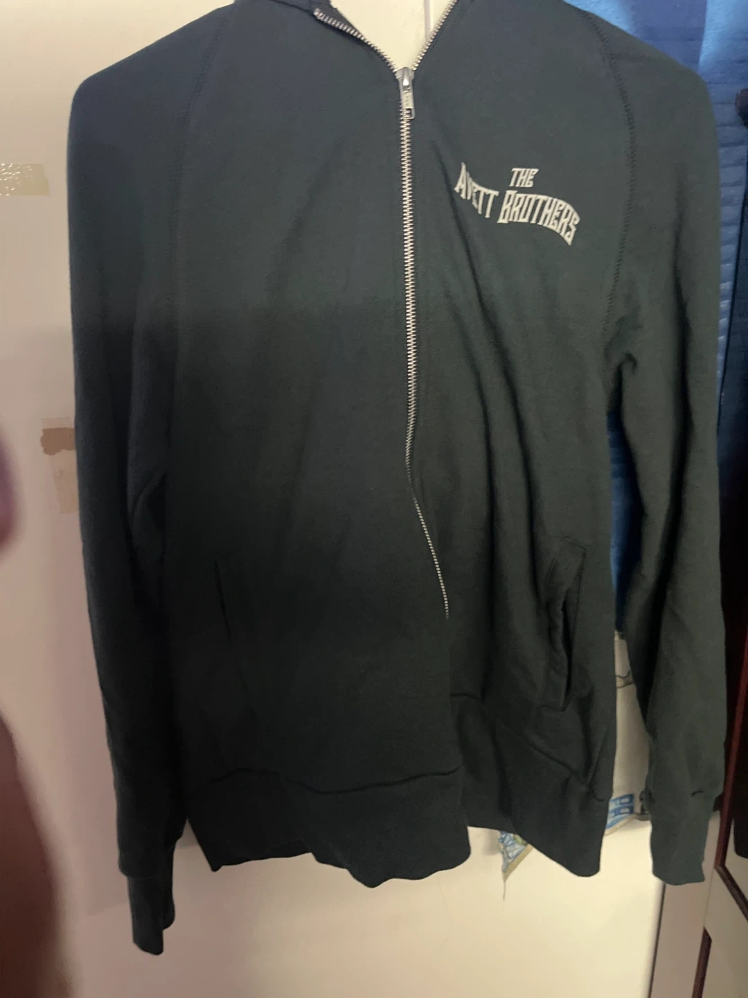 Selling a The Avett Brothers zip-up hoodie. It's a stylish and comfortable way to show your love for the band! The hoodie features the band's name and design on the back.