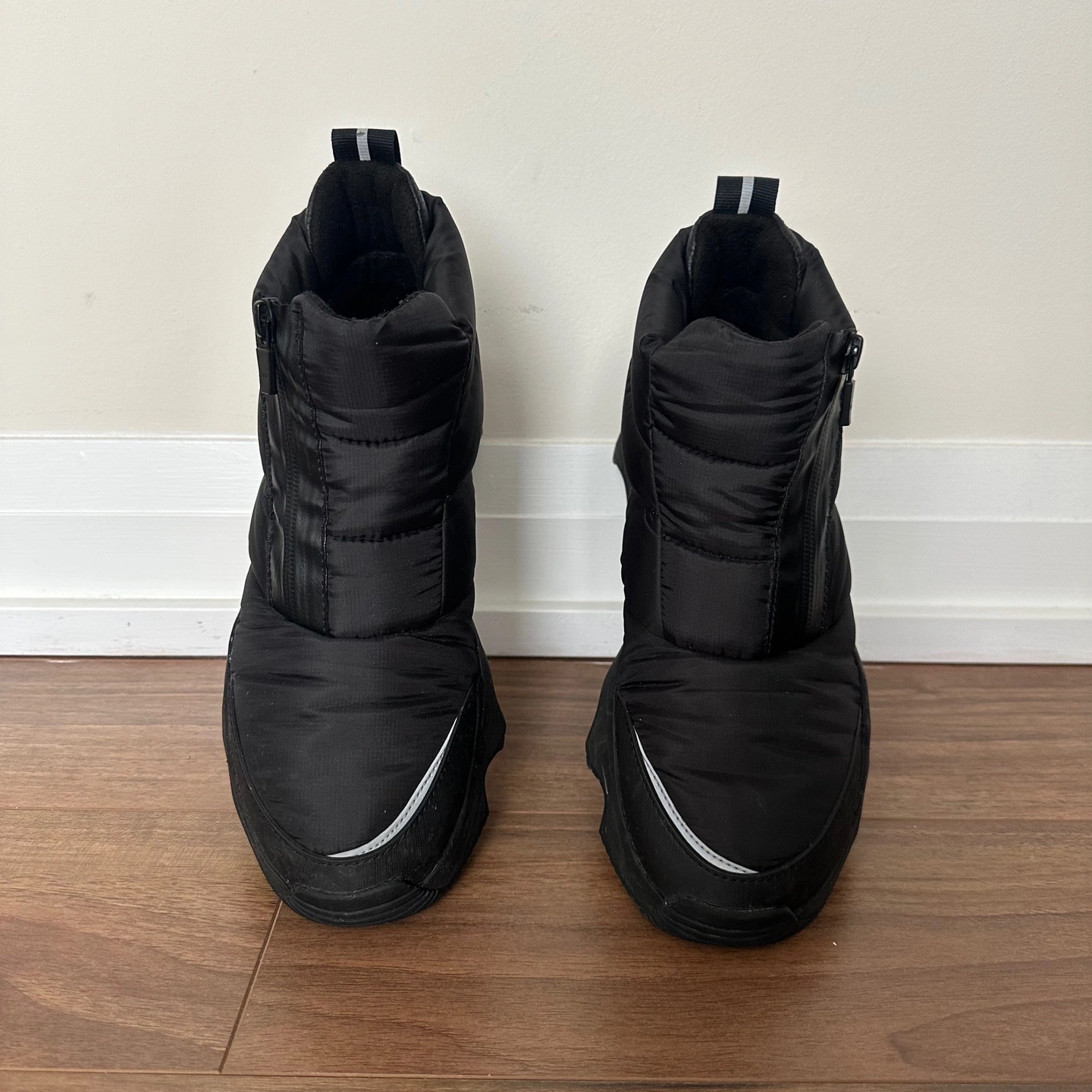 - UPPER: Lighthearted puffy upper with asymmetrical zipper. Microfleece lining. Waterproof construction with a waterproof zipper.