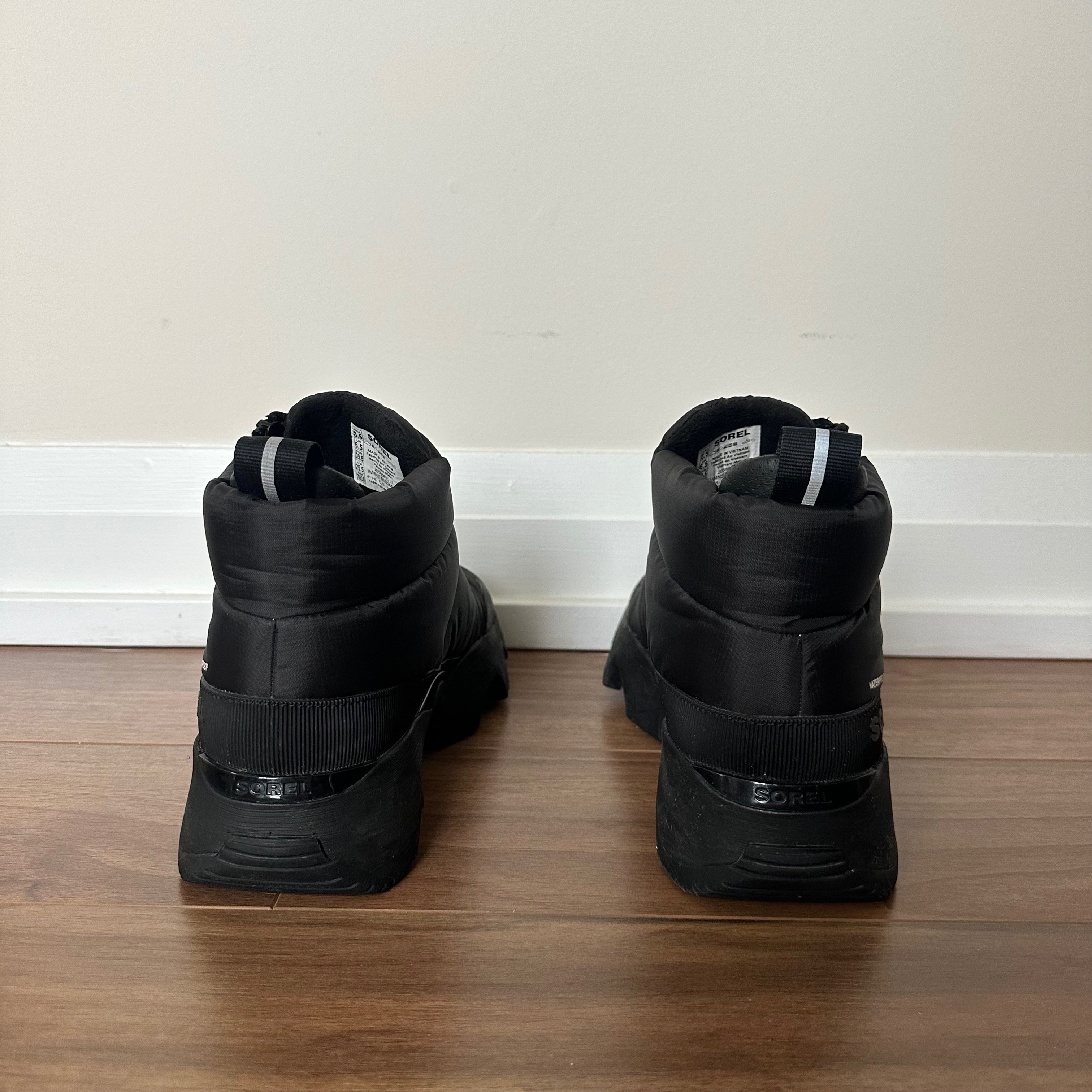 Like new, in amazing condition (only worn twice) KINETIC™ Impact Women's Puffy Zip Waterproof Boot from Sorel. Size 8.5. Nothing wrong with them, unfortunately I just bought them a little too big! Waterproof with 300g insulation. Full rubber outsole and micro-tread heel. Does NOT come with the box.