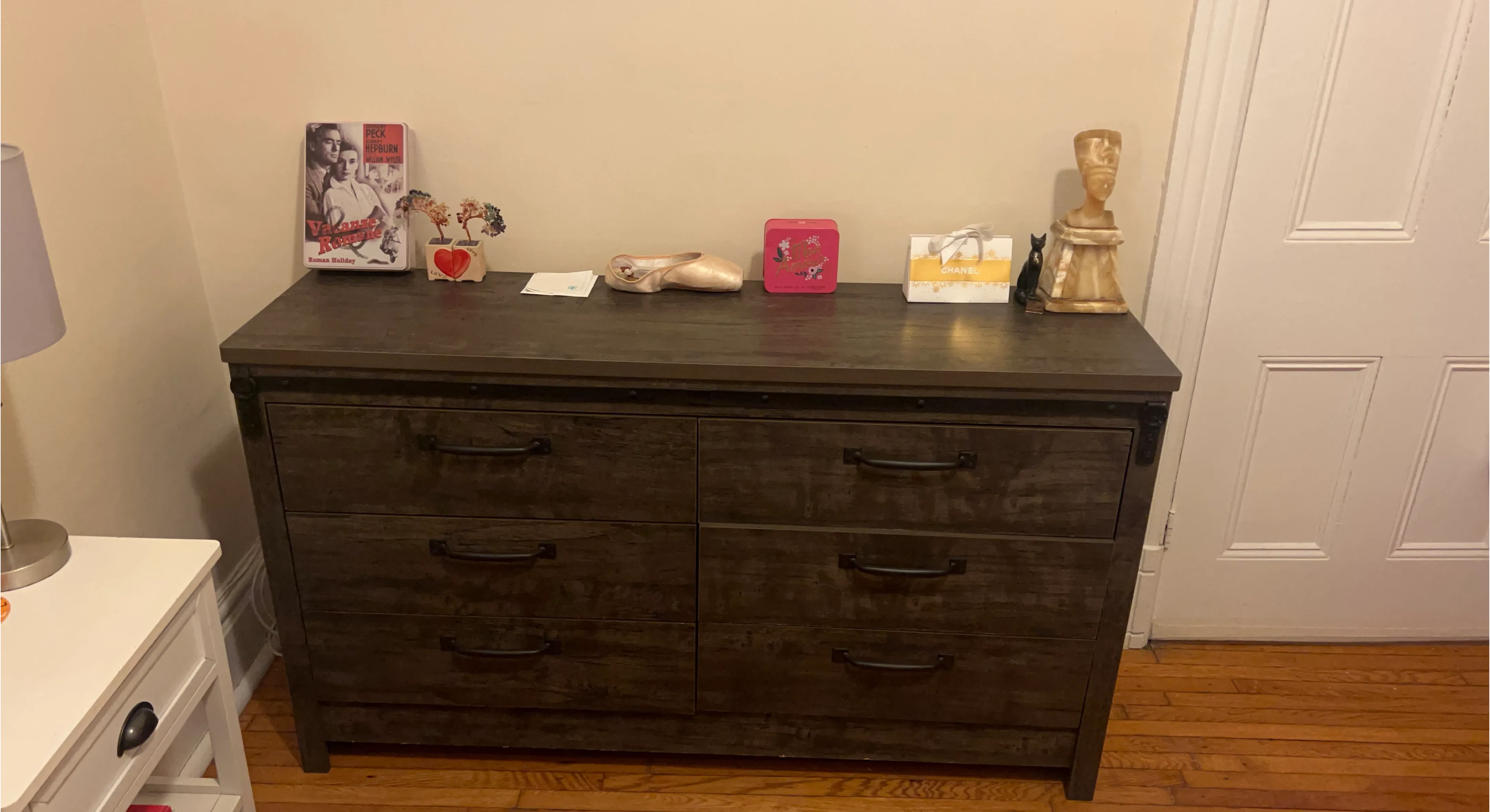 Dark Brown (blue hue) Wooden Dresser with Six Drawers