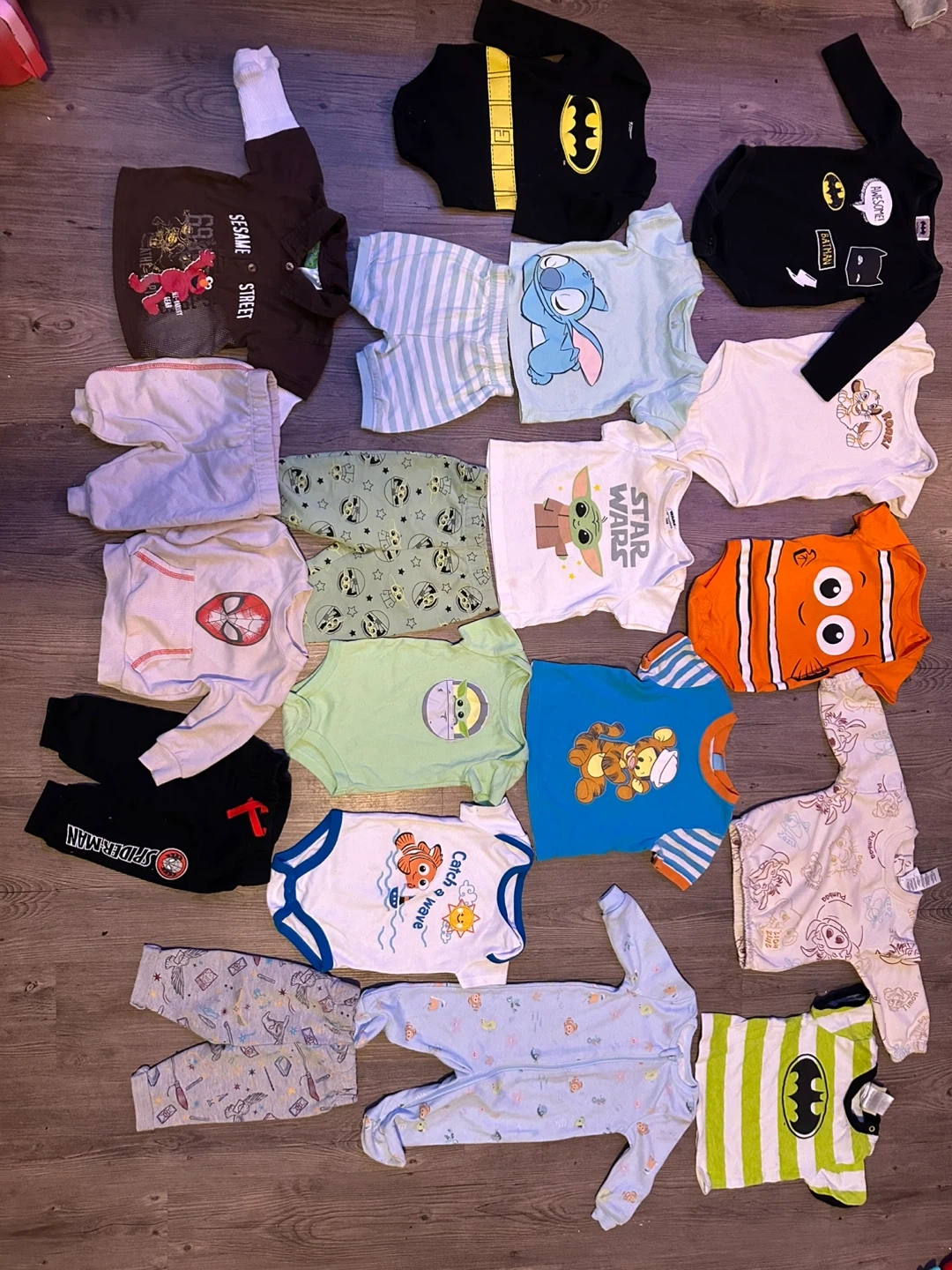Most are not used and some were very gently used. All Various of Disney and super hero themed baby clothing!