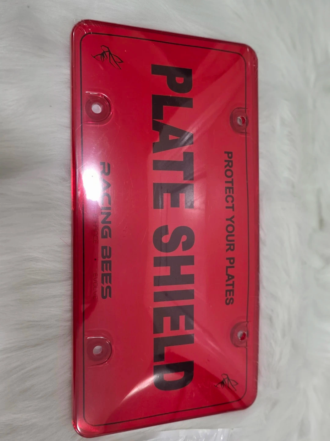 This is a red plate shield for protecting your car's license plates. It fits most Canada standard license plates. It's made for enhancing the styling of your car while keeping plates clean. Mounting hardware is included.