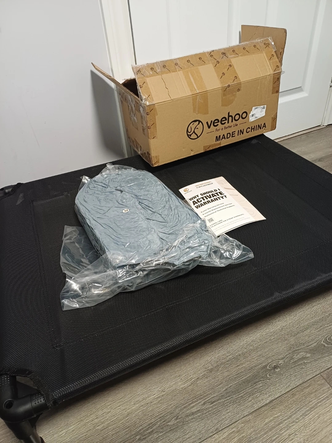 Selling a brand new Veehoo elevated dog bed, with bolster still in plastic. Also still in its original packaging! It's a great way to keep your furry friend cool and comfortable.
