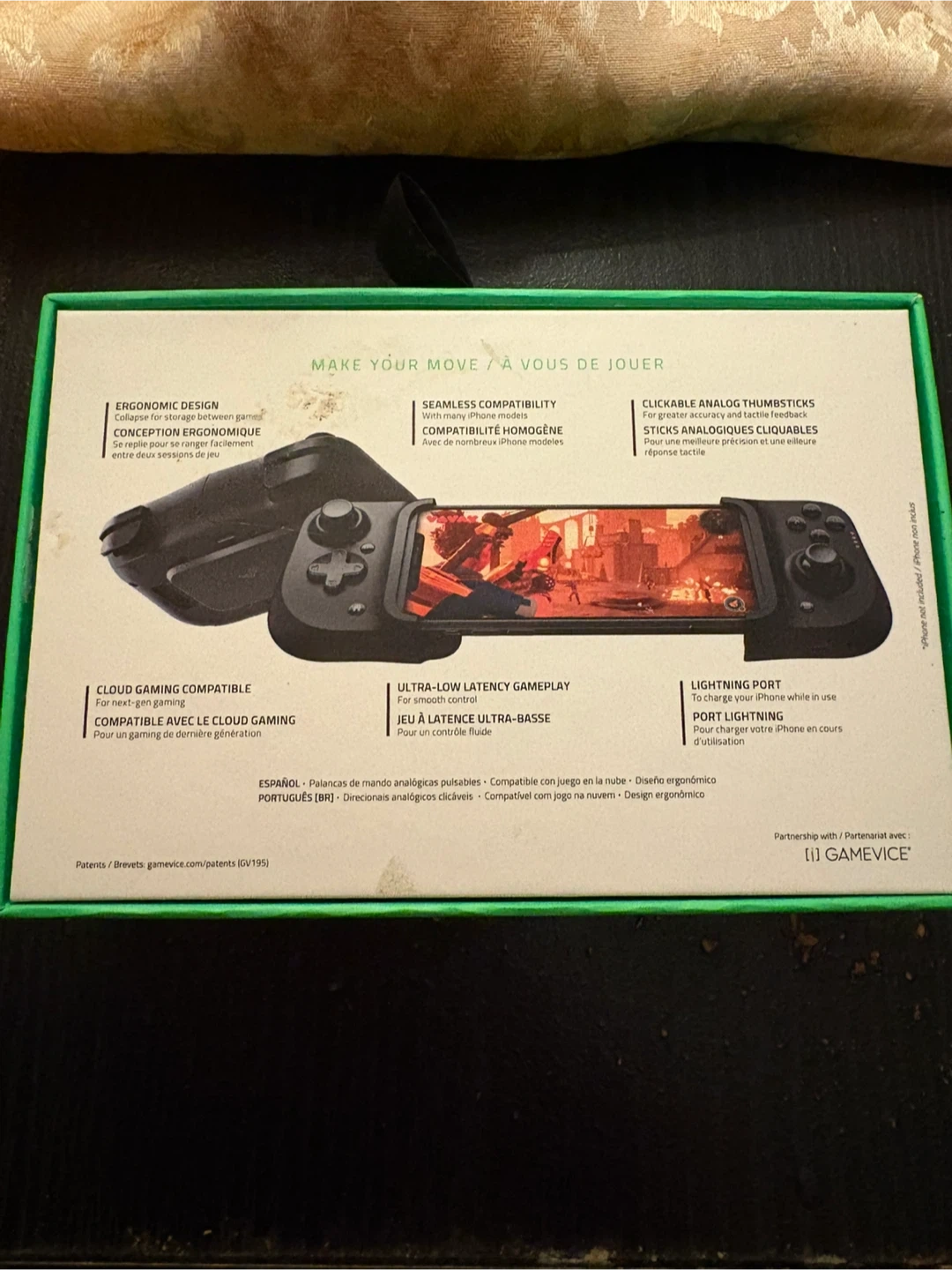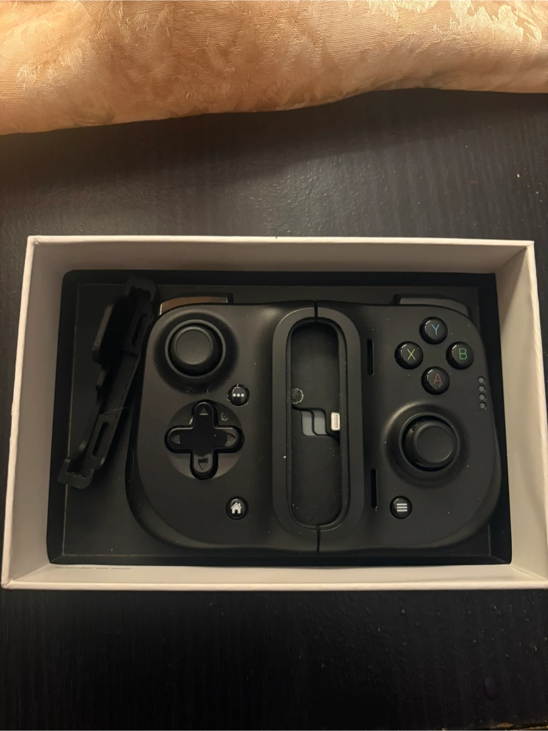 This Razer Kishi is a universal gaming controller designed for iPhone. It features an ergonomic design with clickable analog thumbsticks and ultra-low latency gameplay. It's also cloud gaming compatible and has a lightning port for charging your iPhone while in use. Perfect for mobile gaming.
