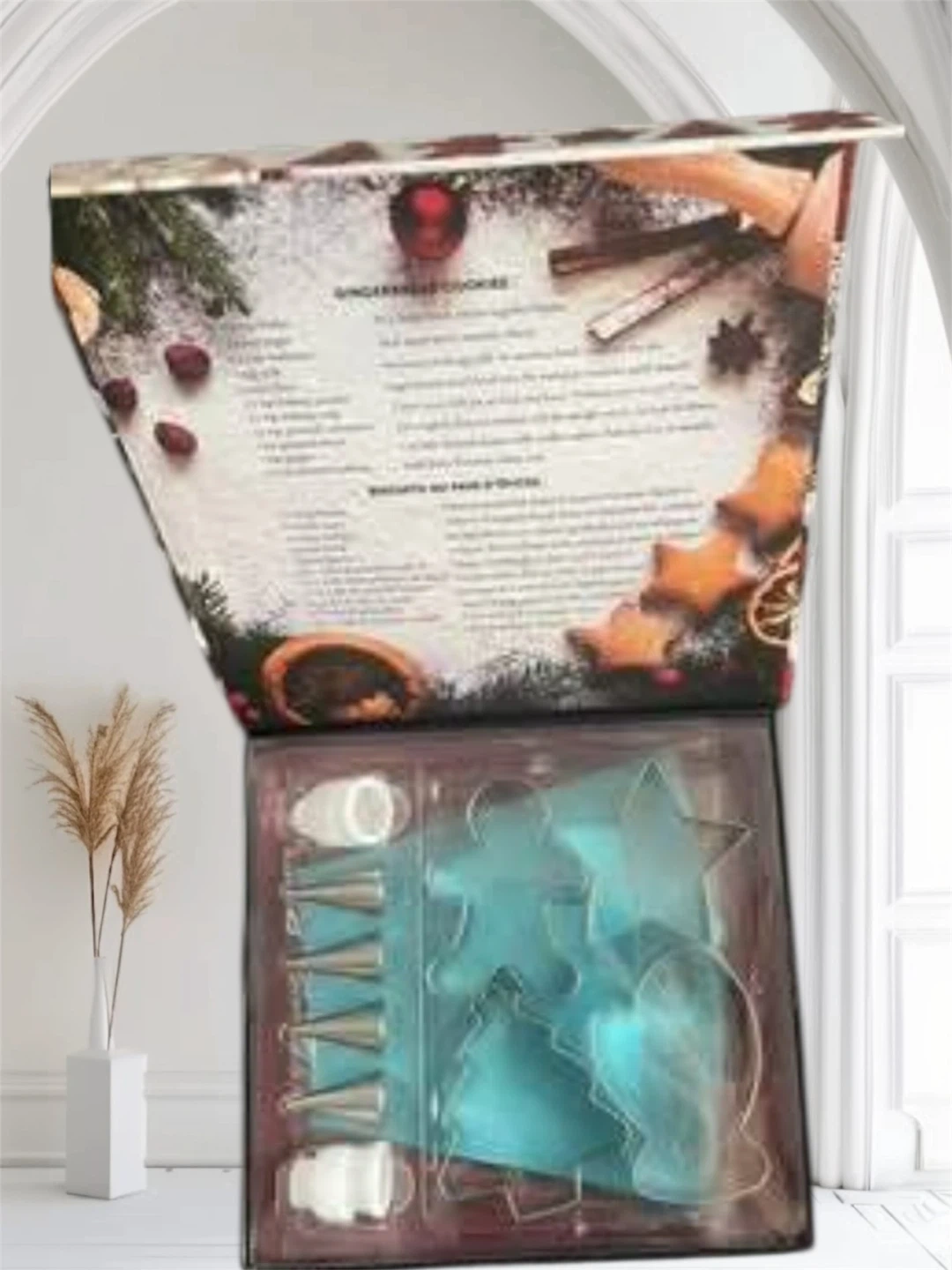 Cookie decorating set with everything you need to make festive treats! It includes cookie cutters, piping bags, and decorating tips. The set comes in its original box, ready for gifting or using