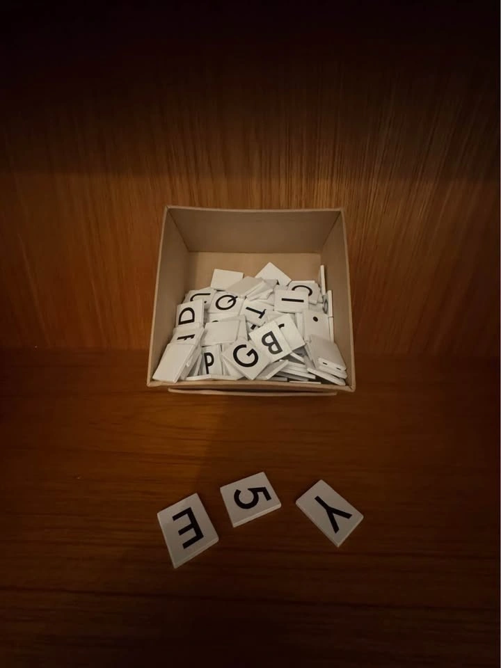 New condition white wooden board with alphanumeric tiles included and clips for hanging items. Available in crescent heights for cash payment.