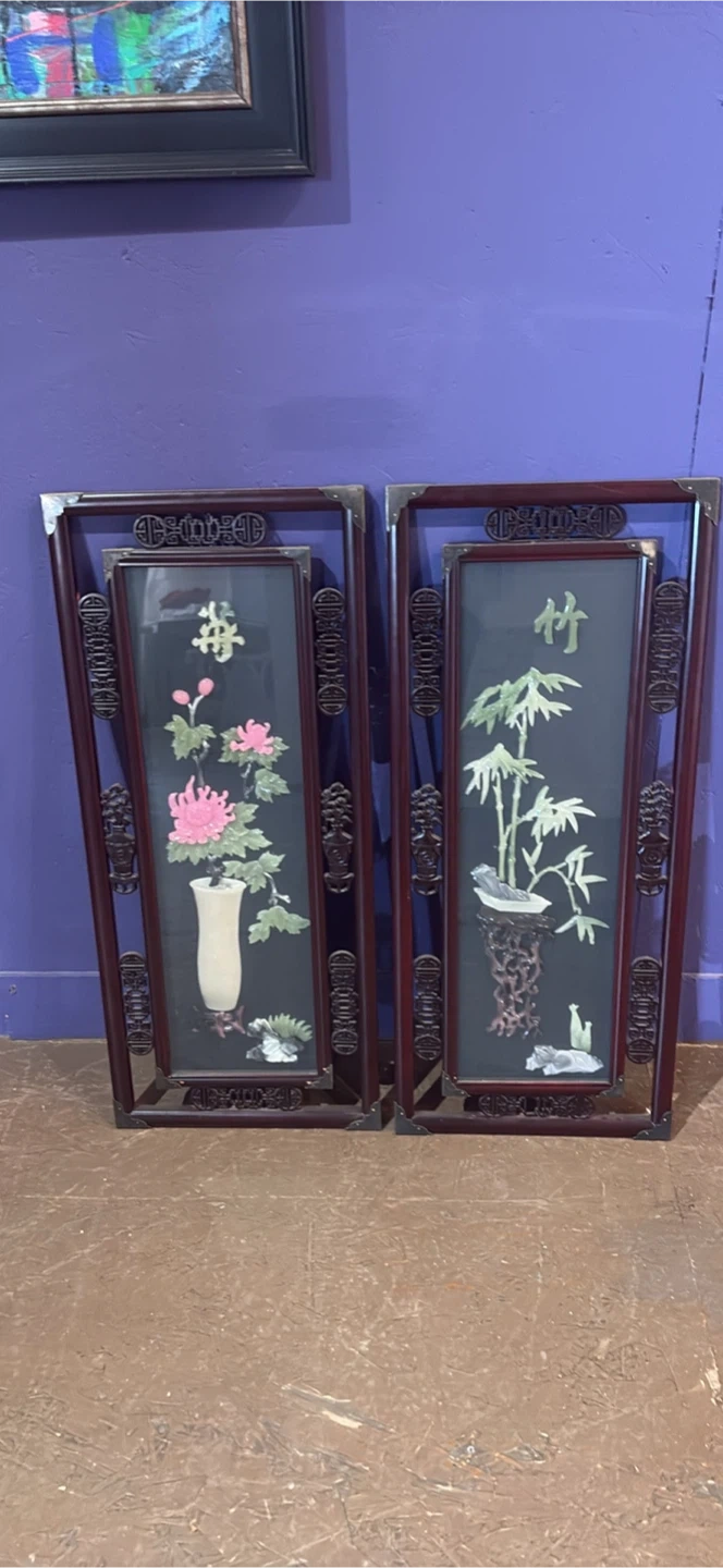 Vintage Chinese Inlaid Wall Panels - Set of 2