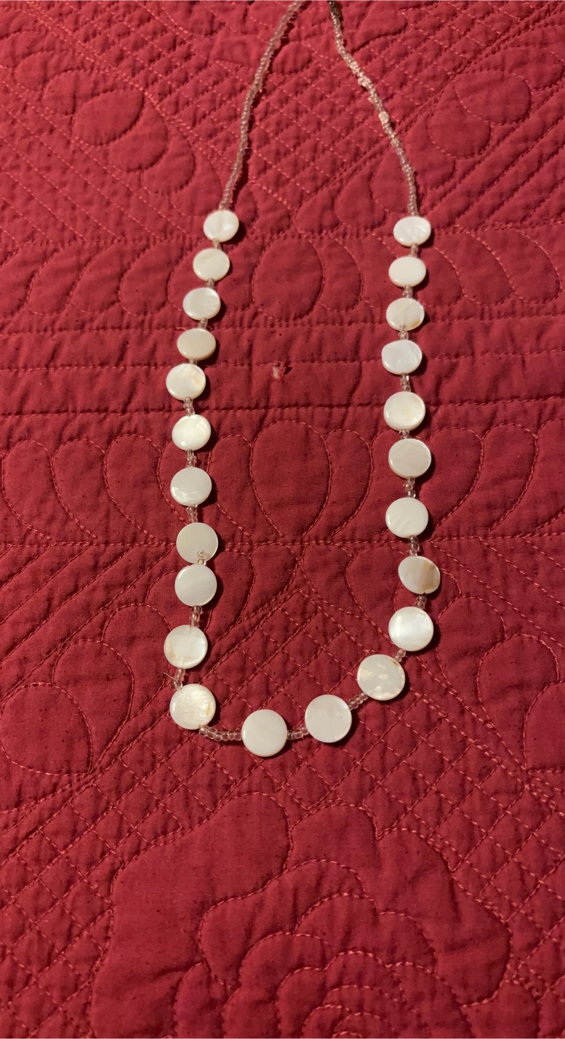 1 / 11 / 1Buy & SellMother of Pearl Beaded NecklaceMother of Pearl Beaded Necklace$12A pretty necklace featuring mother of pearl discs and clear beads. It's in great condition and ready to wear!ConditionLike newWHERE TO MEETCornellView MapSELLERverifiedSimbaCornell23015 reviews0 chats·0 favorites·19 viewsSEND CHAT TO SELLERHi Simba! I’m interested in your listing.Hi Simba! I’m interested in your listing.Get the Karrot app to chatSign In to chat