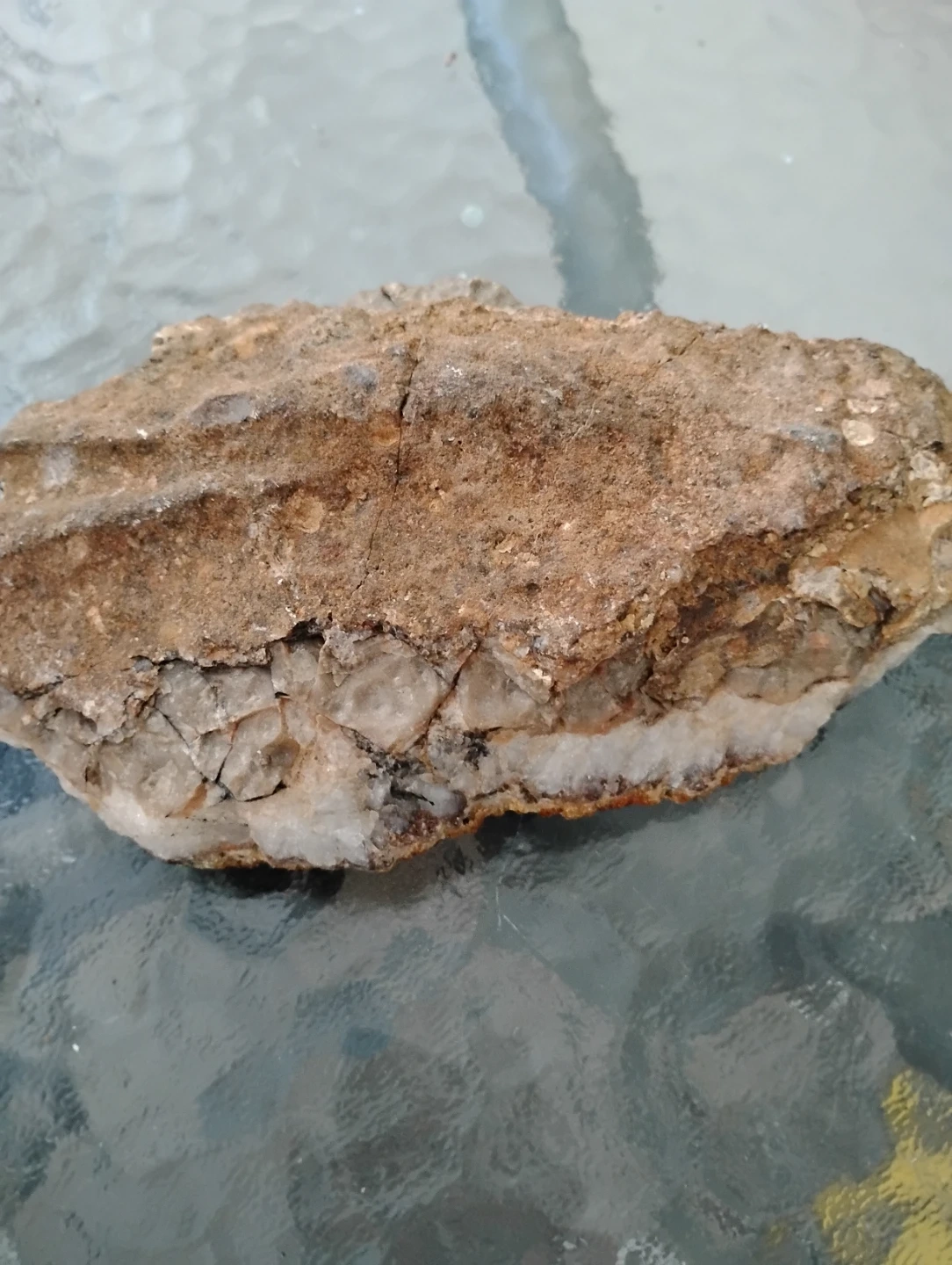 This is a natural crystal specimen rock with visible quartz and reddish-brown crystal formations.Citrine It's a unique geological find. Great for collectors or as a decorative piece!