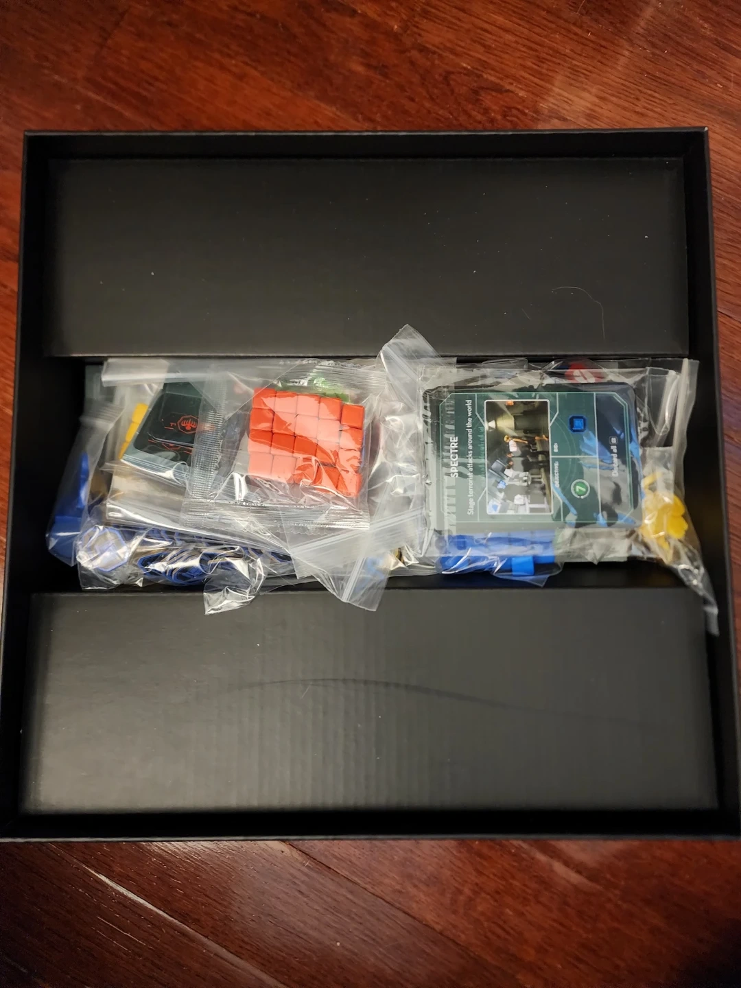 Can you be Number 1? SPECTRE The Board Game features iconic characters from the James Bond films. Players will need to work behind the scenes to stop SPECTRE's evil plans. Includes 4 SPECTRE tokens, 25 Gold tokens, 25 Blueprint tokens, 6 Agent tokens, 70 Mission cards, 30A Secret Plan cards, and a 007 box.
