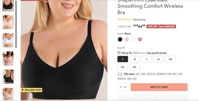 Shapermint Essentials Smoothing Comfort Wireless Bra - Black 2XL