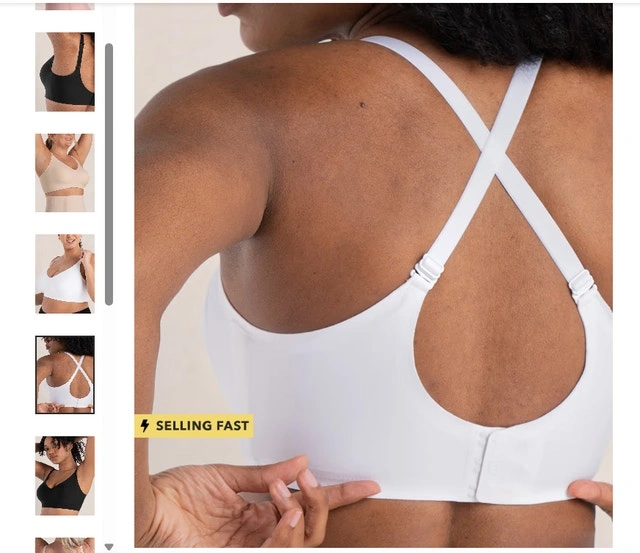 Hi there! My wife found this bra a bit uncomfortable in terms of material, so she only tried it on for a few minutes. She's a 42DD and it fit her well otherwise. For reference, she's 5'7". The straps can be adjusted to wear criss-cross too, as shown in the photos. This bra features a wire-free design for comfort and support, laser-cut bonded edges that feel like a second skin, adjustable straps, and a three-row hook & eye closure for a perfect fit. It also has removable cups for customizable control, side & back smoothing, and ultra-stretch bonded fabric for lift and support. Composition: 80% Polyamide, 20% Elastane. Condition is New.