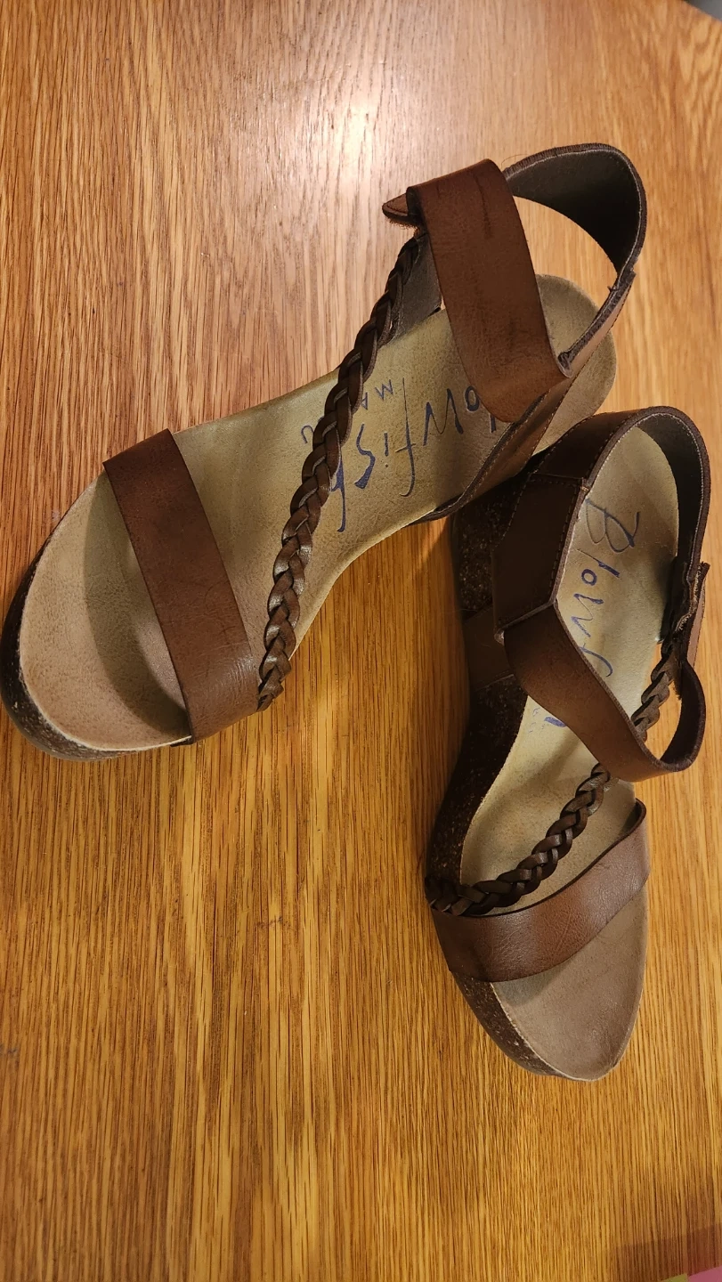 Gently used Blowfish Malibu wedge sandals in a lovely brown colour!