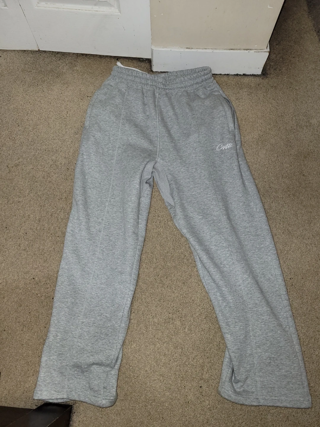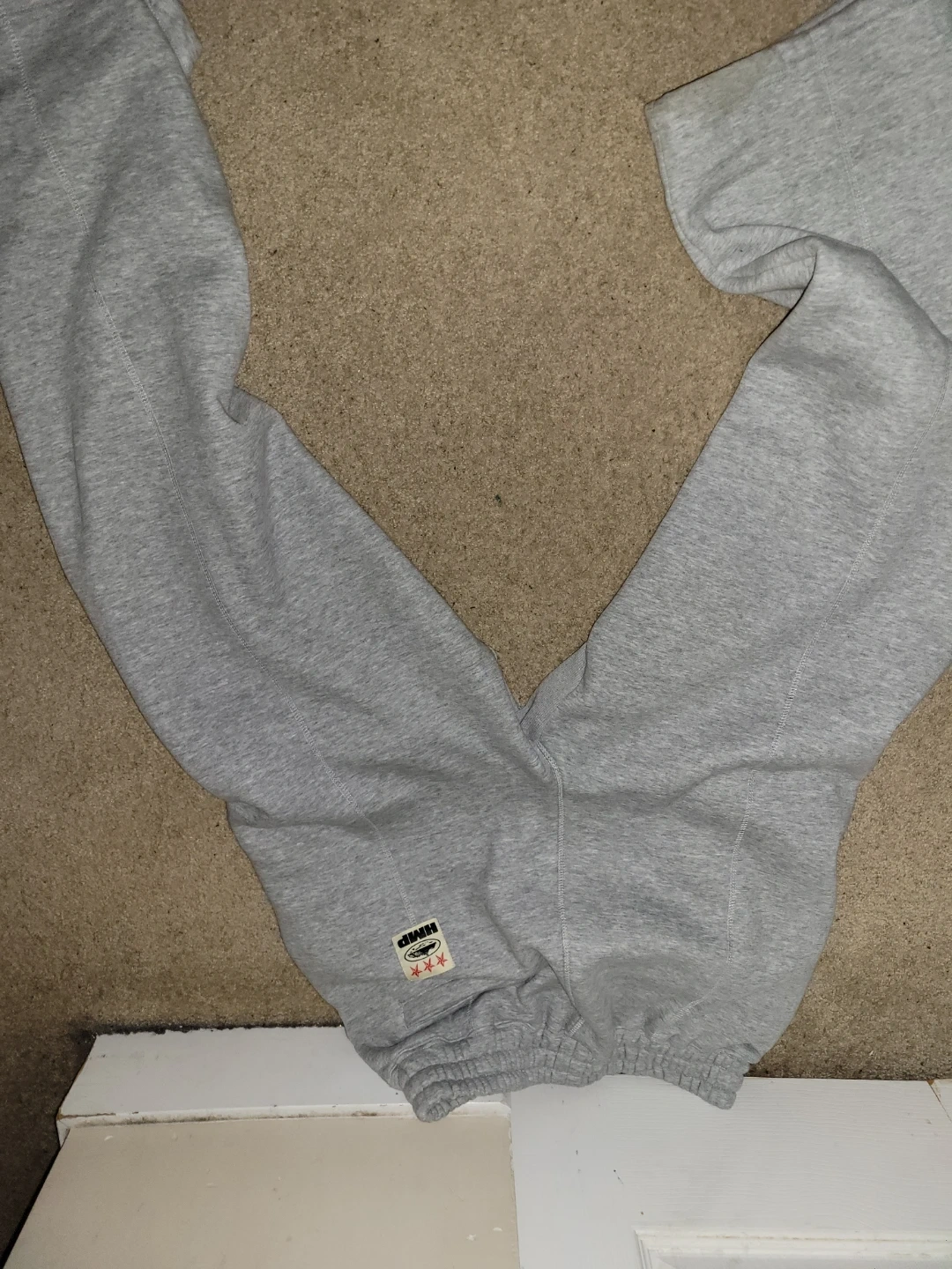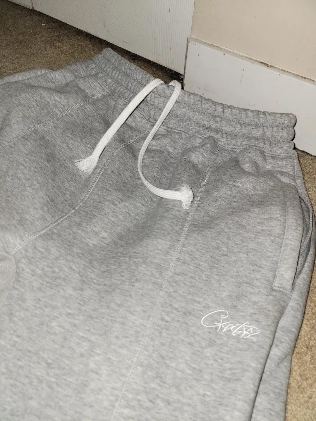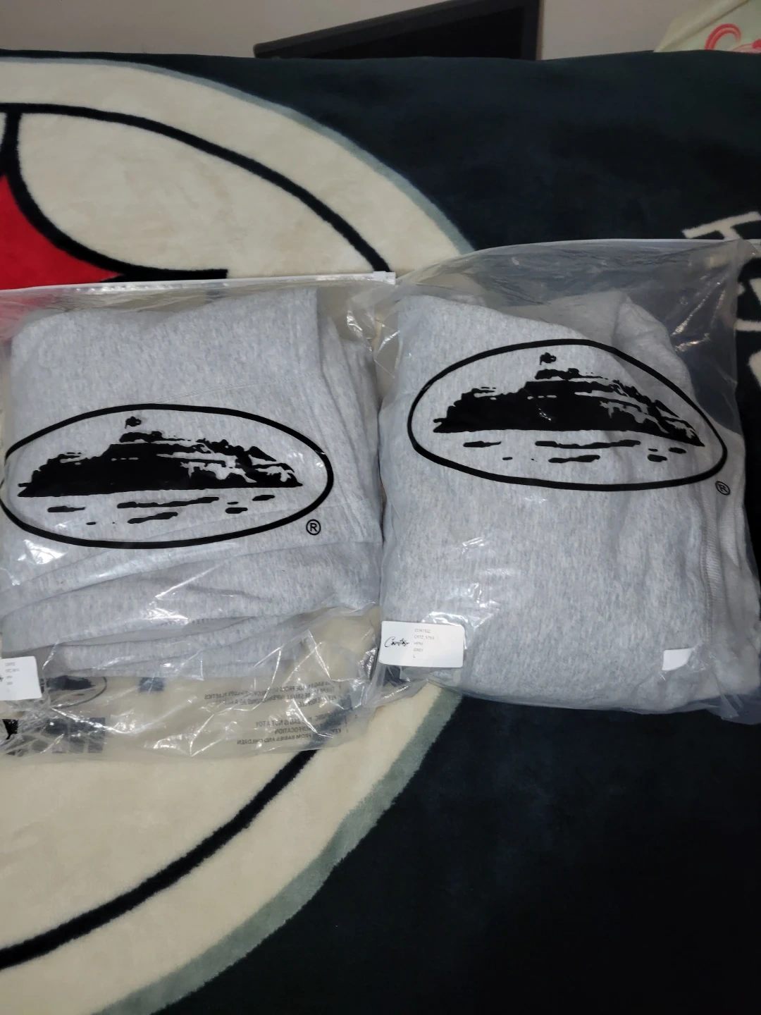 Brand new, this Corteiz HMP set is super comfy. Has a grey full zip hoodie with a white waffle-knit hood lining. Matching grey sweatpants. Both pieces have the Corteiz embroidery. Hoodie still has its HMP tag on.