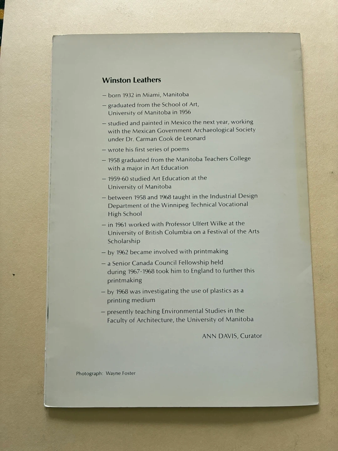 Nice piece of Manitoba Art history and evocative of Canadian art scene at the time