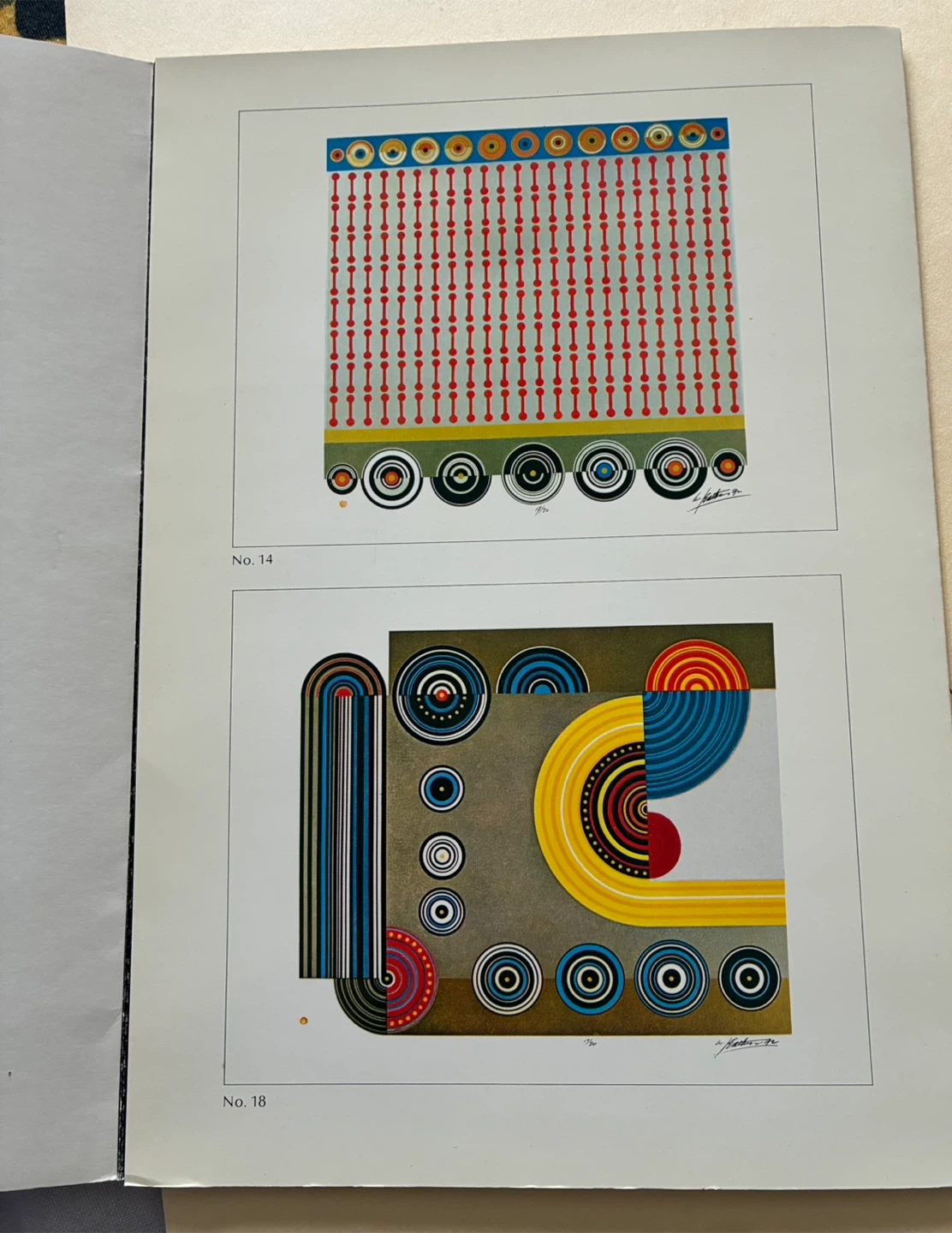 The works are abstract patterns of spheres and lines influenced by Zen Buddhism and Eastern philosophy.