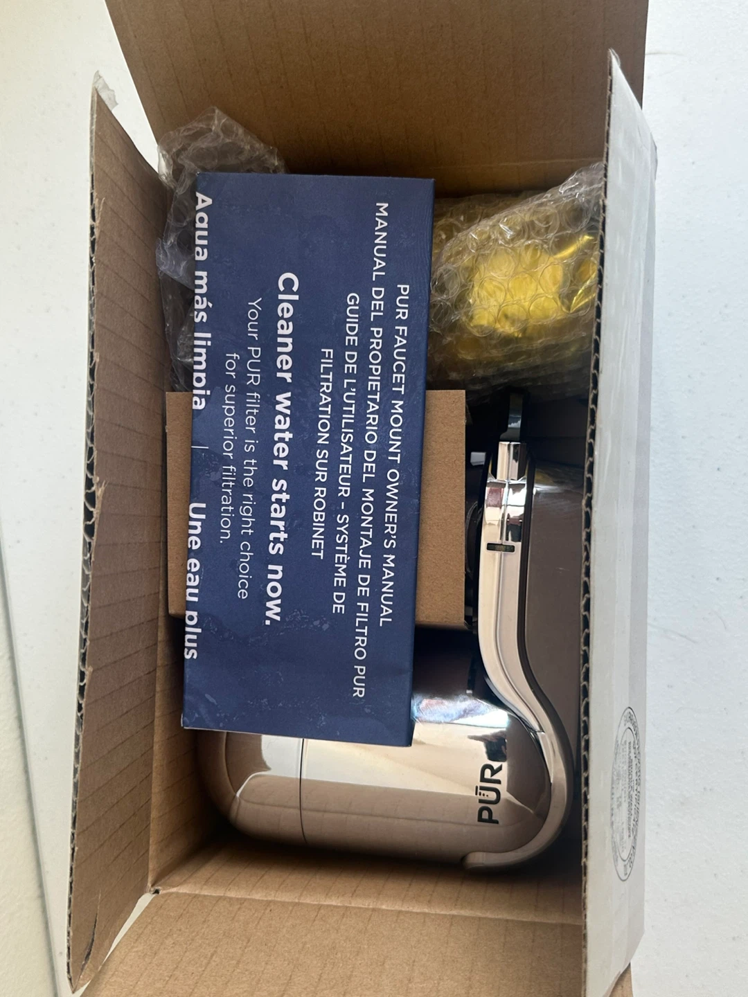 Selling a brand new PUR Plus Faucet Mount Filtration System! It's still in its original box and includes all components and accessories. This system provides great tasting water with its mineral core filter, reducing 10x more contaminants than leading Brita filters. It's certified to reduce lead and does not filter microbes.