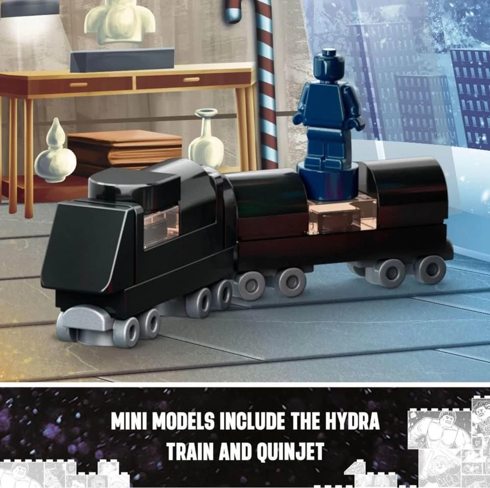 -Mini build models – Buildable play experiences include a Quinjet, jetpack, ice hockey kit, the Hydra Train and lots more items inspired by the Marvel Cinematic Universe