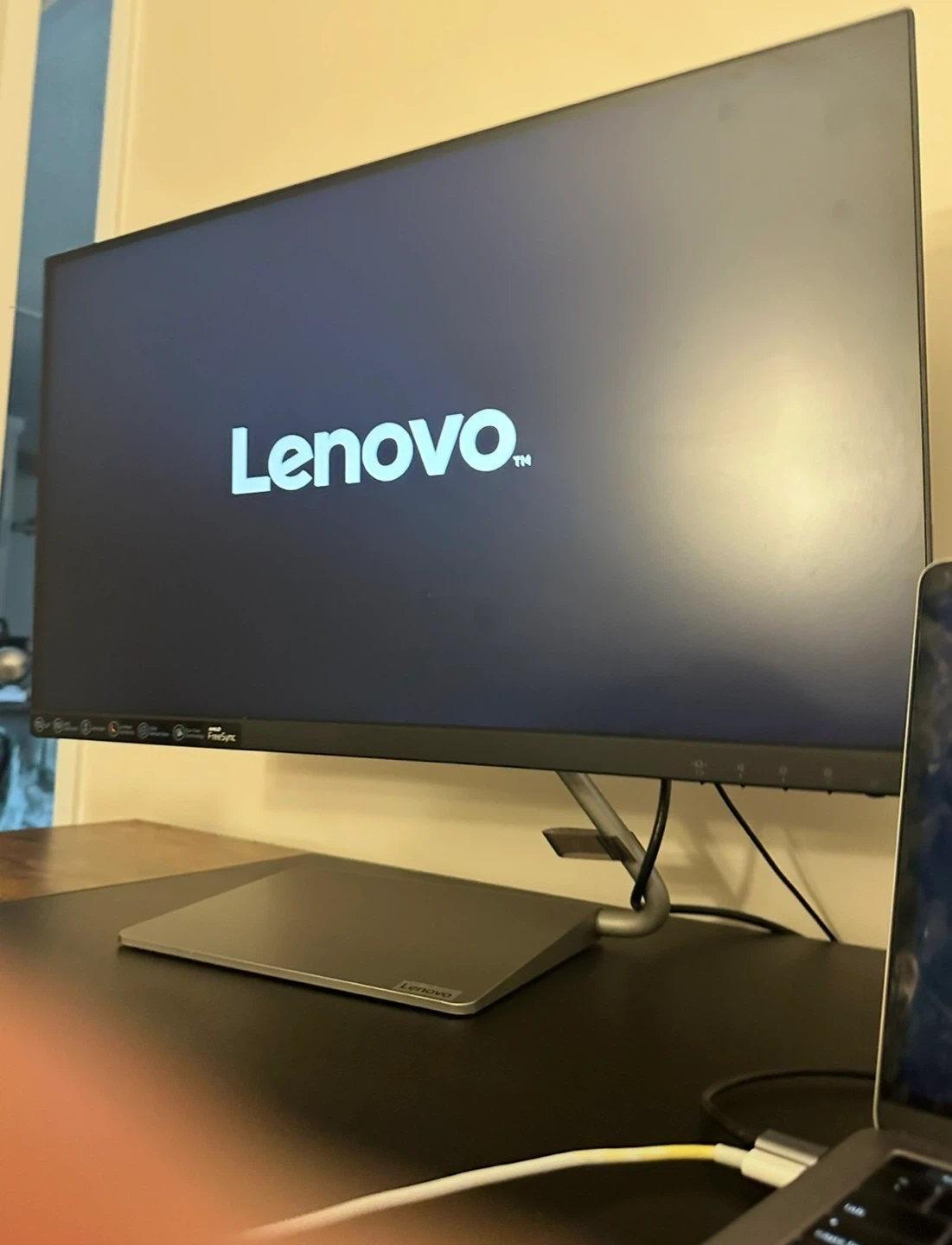 Lenovo monitor. Includes stand. Perfect for a home office setup.