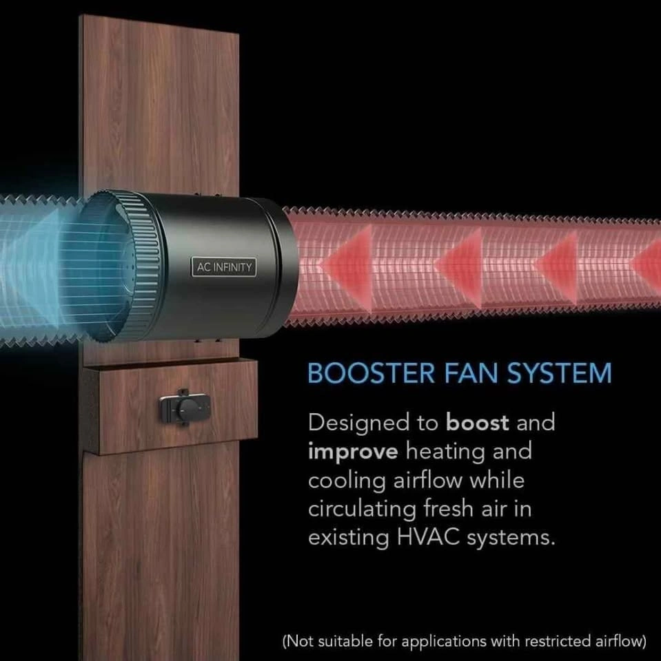 This versatile inline booster fan is made to be installed in between ducting for various applications that need improved air delivery. In households, it boosts airflow from HVAC units to remove stale air and odor, ventilating attics, workshops, kitchens, basements, etc. In grow tents, grow rooms, and indoor gardens, it’s primarily used as an intake fan to bring in fresh air. Please note this booster fan cannot be used standalone in high static pressure applications like room ventilation. Additionally, it is not suitable for use in applications with restricted airflow like systems that use carbon filters. For higher performance, see the CLOUDLINE Series.
