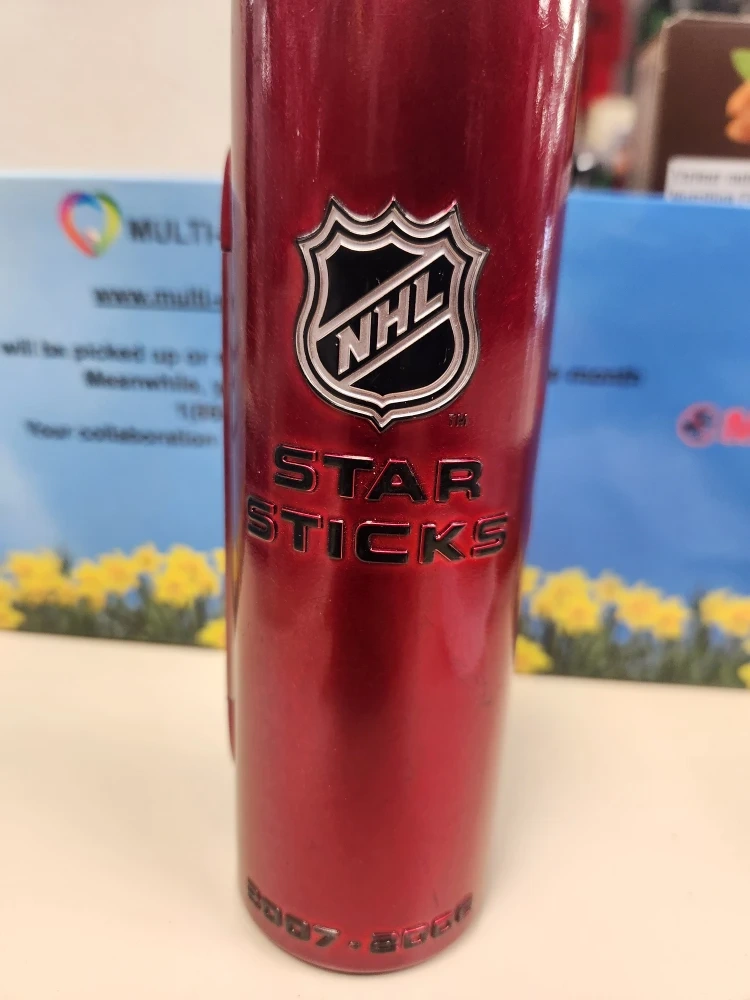 Selling a NHL Star Sticks mini hockey stick featuring Ray Emery. It comes in a red case with a list of NHL team logos. Great for any hockey fan! More options available as well .