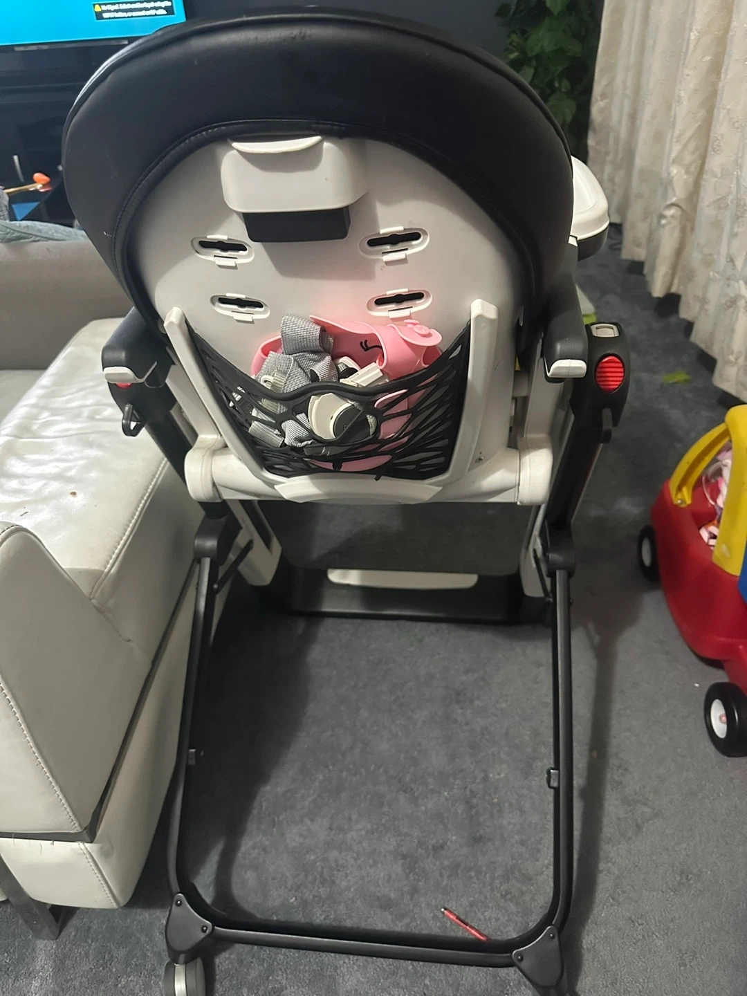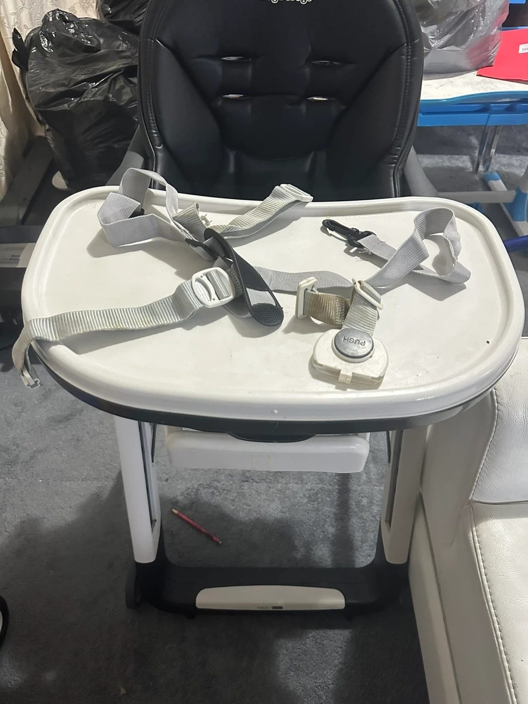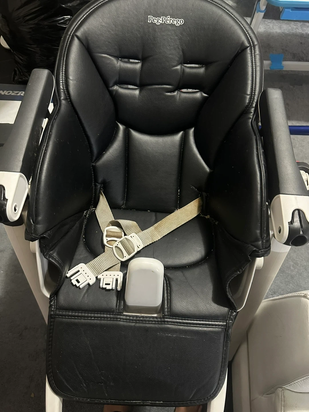 Selling a Peg Perego high chair in black. It's in good condition and ready for a new family. This high chair is perfect for feeding time and keeping your little one secure and comfortable