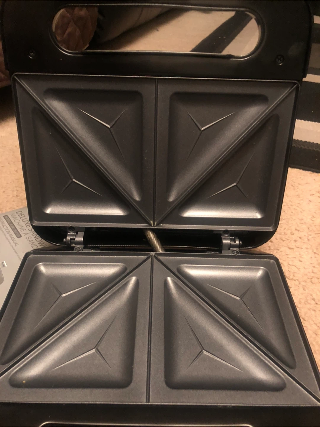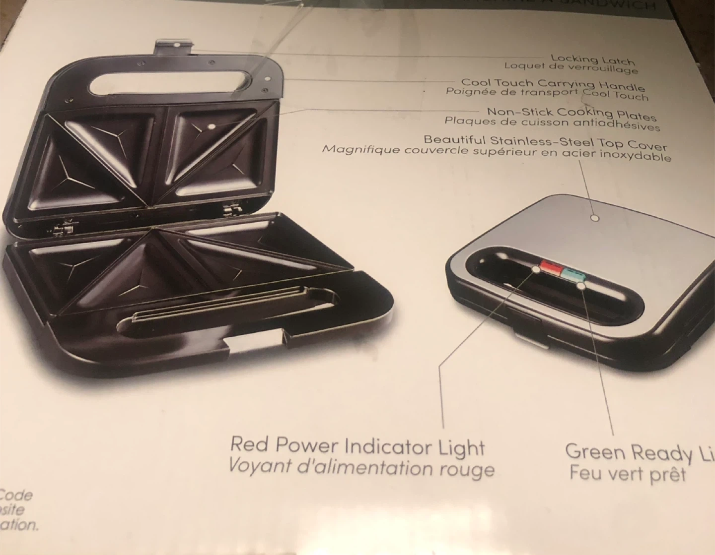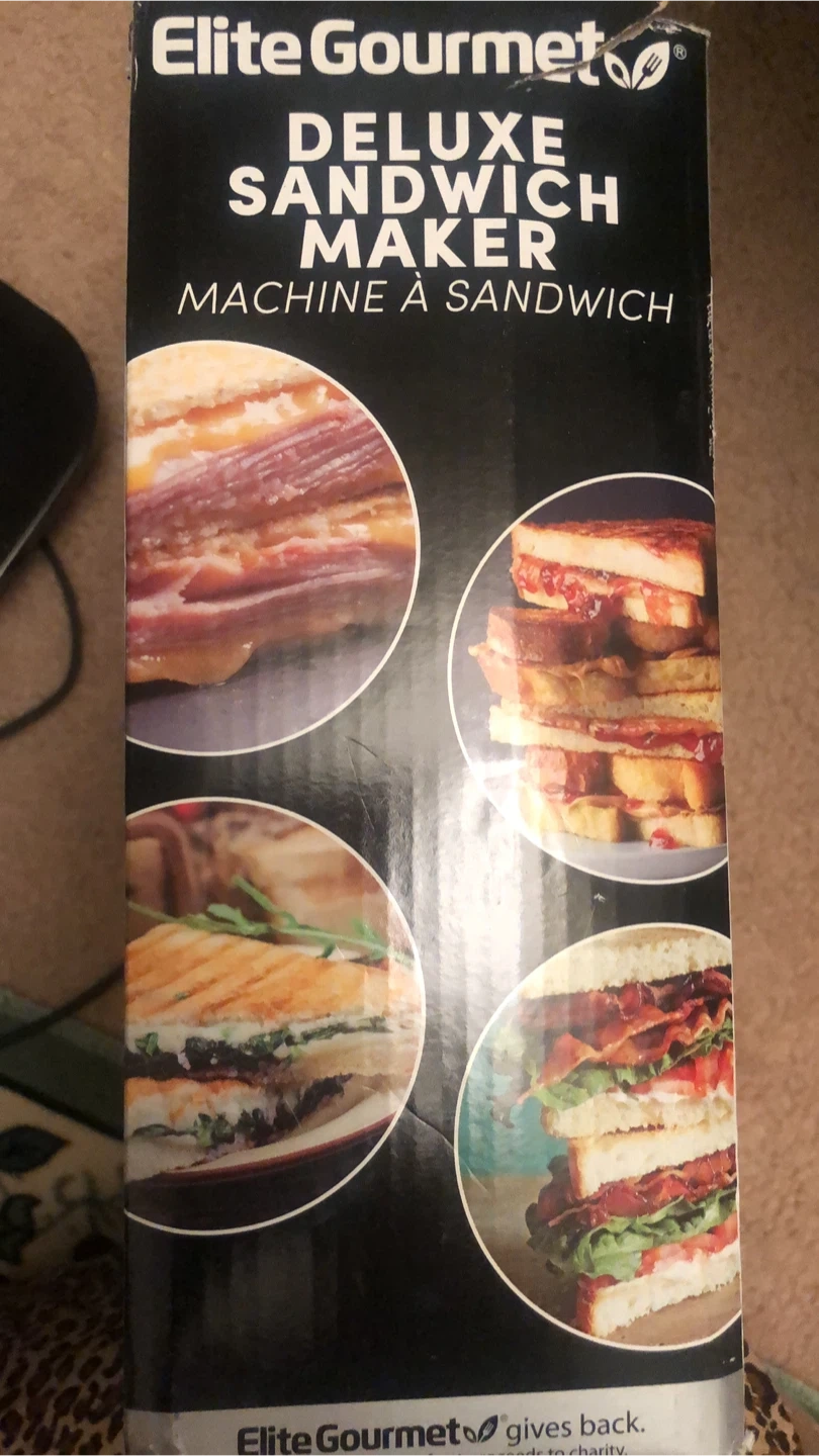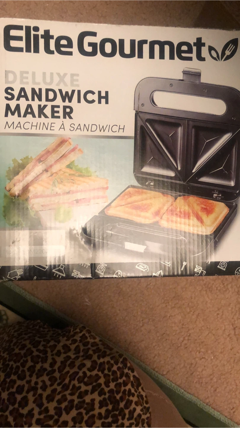 This Elite Gourmet Deluxe Sandwich Maker is designed for quick and easy sandwich preparation. It features non-stick cooking plates for simple cleanup and a stainless-steel top cover. Red and green indicator lights let you know when it's powered on and ready to cook.