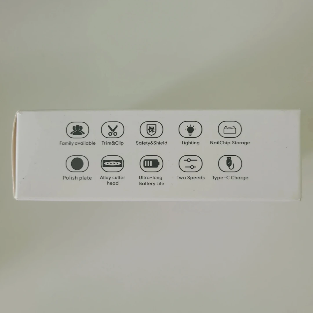 Selling a brand new multifunctional electric nail clipper that trims and clips. It has safety and shield features, lighting, and nail chip storage. The clipper includes a polish plate and an alloy cutter head. It has an ultra-long battery life and two speeds, plus it comes with a Type-C charger.